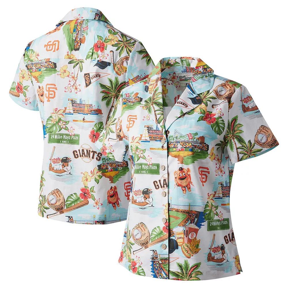 Bring the aloha spirit to game day with this San Francisco Giants Scenic button-up shirt. Crafted by Reyn Spooner, its hand-painted print features favorite local foods, famous streets and the iconic ballpark. The relaxed fit makes this San Francisco Giants shirt ideal for casual occasions.Bring the aloha spirit to game day with this San Francisco Giants Scenic button-up shirt. Crafted by Reyn Spooner, its hand-painted print features favorite local foods, famous streets and the iconic ballpark. The relaxed fit makes this San Francisco Giants shirt ideal for casual occasions.PRODUCT FEATURESImportedBrand: Reyn SpoonerAllover printed designShort sleeveFull-button frontMaterial: 100% CottonOfficially licensedBaseball-shaped coconut buttonsMachine wash, tumble dry lowRelaxed fit Color: White. Gender: female. Age Group: adult.