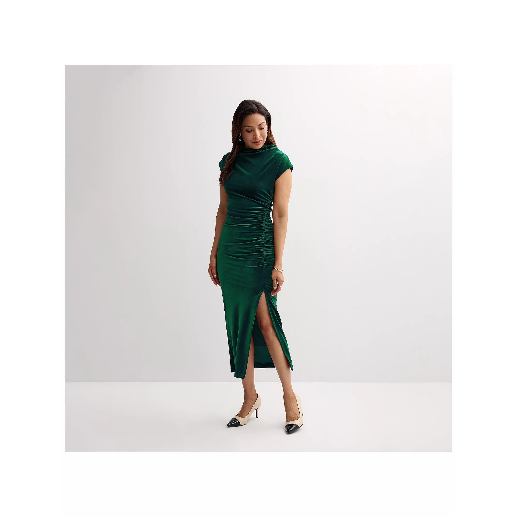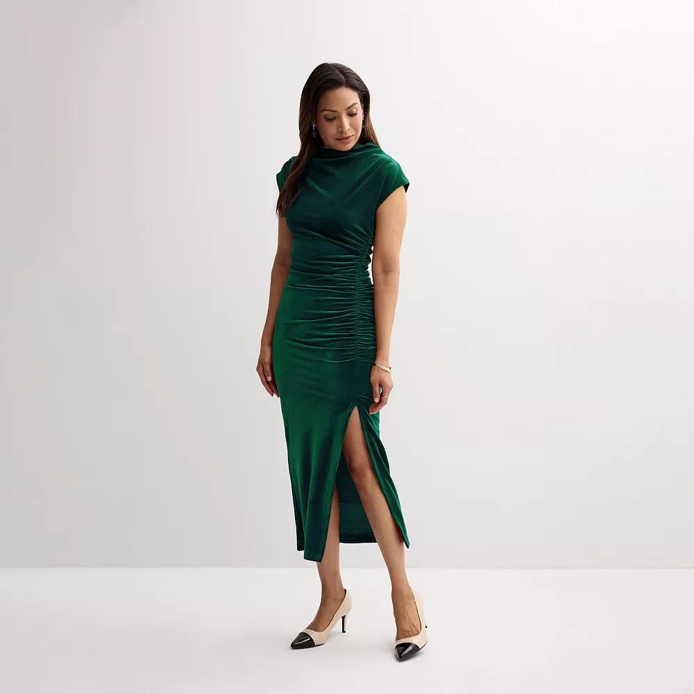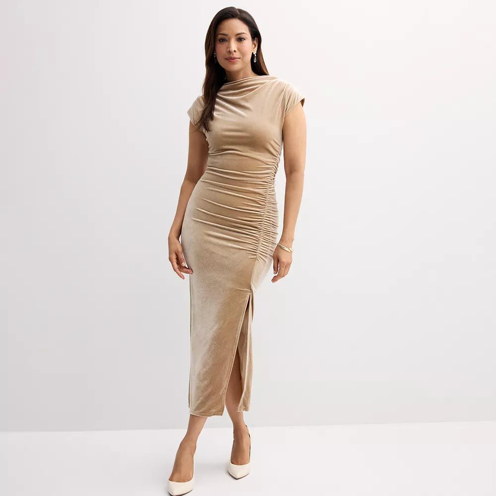 Upgrade your wardrobe with this womens Robbie Bee high neck ruched velvet midi dress. Click on this WOMENS GUIDE to find the perfect fit and more!Upgrade your wardrobe with this womens Robbie Bee high neck ruched velvet midi dress. Click on this WOMENS GUIDE to find the perfect fit and more!FEATURES Drapeneck Sleeveless High-low hem Fully lined Pullover stylingFIT & SIZING 53-in. length Maxi length hits at the ankle Bodycon styleFABRIC & CARE Polyester, spandex Polyester lining Machine wash and line dry Imported Size: X Large. Color: Champagne. Gender: female. Age Group: adult.