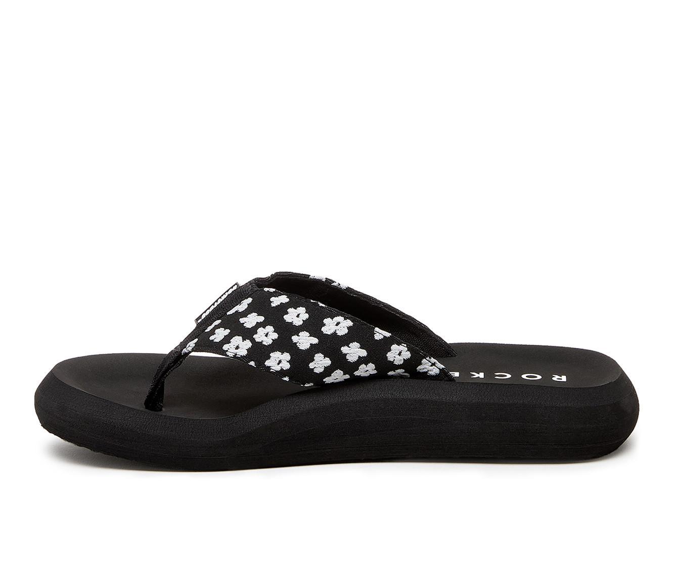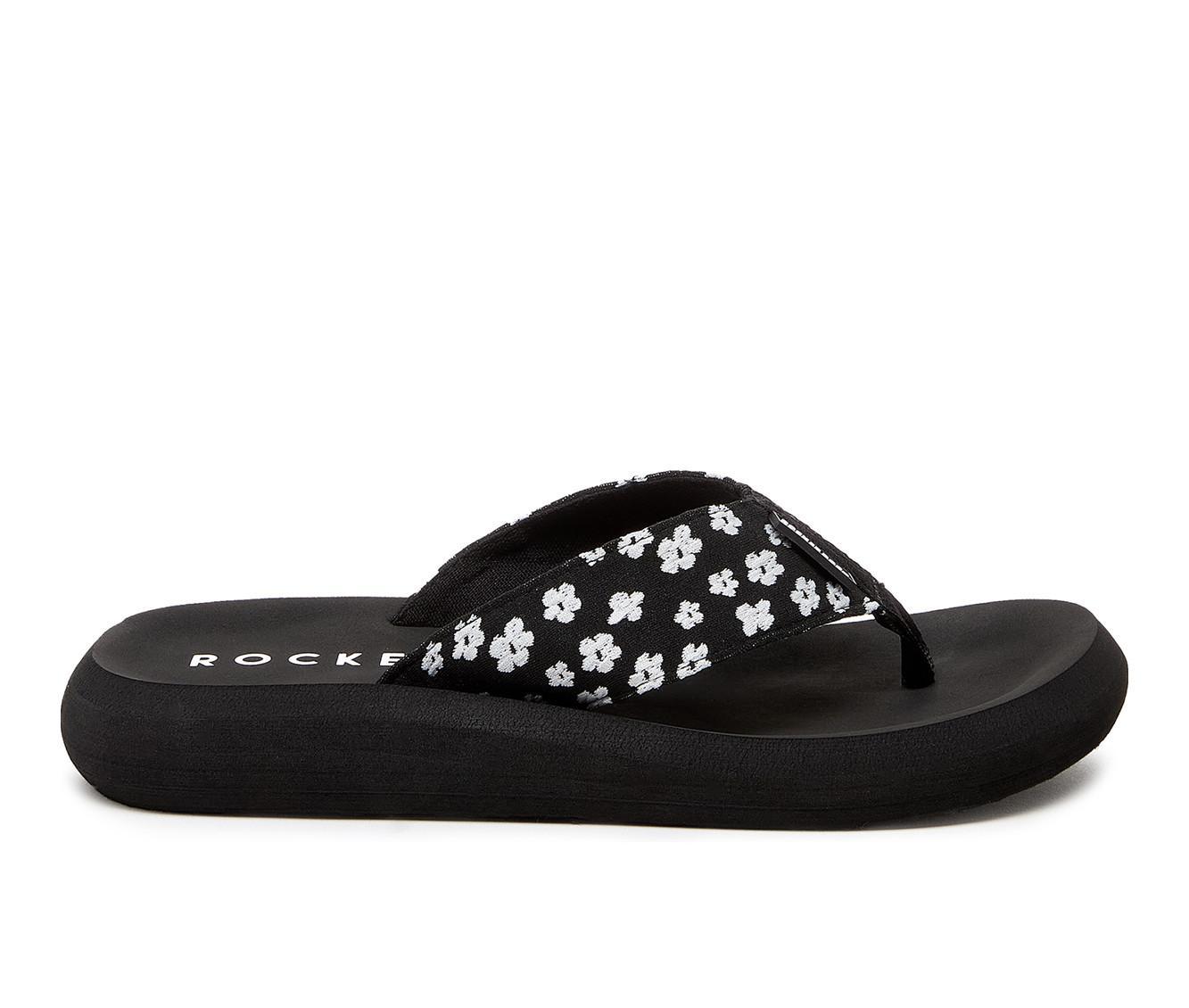 Add a touch of floral fun to your summer style with the Rocket Dog Women's Spotlight Black Pixie Floral Flip Flop. These chic flip-flops feature a black footbed with a delicate floral print, a comfy platform, and a versatile design that's perfect for everyday wear.