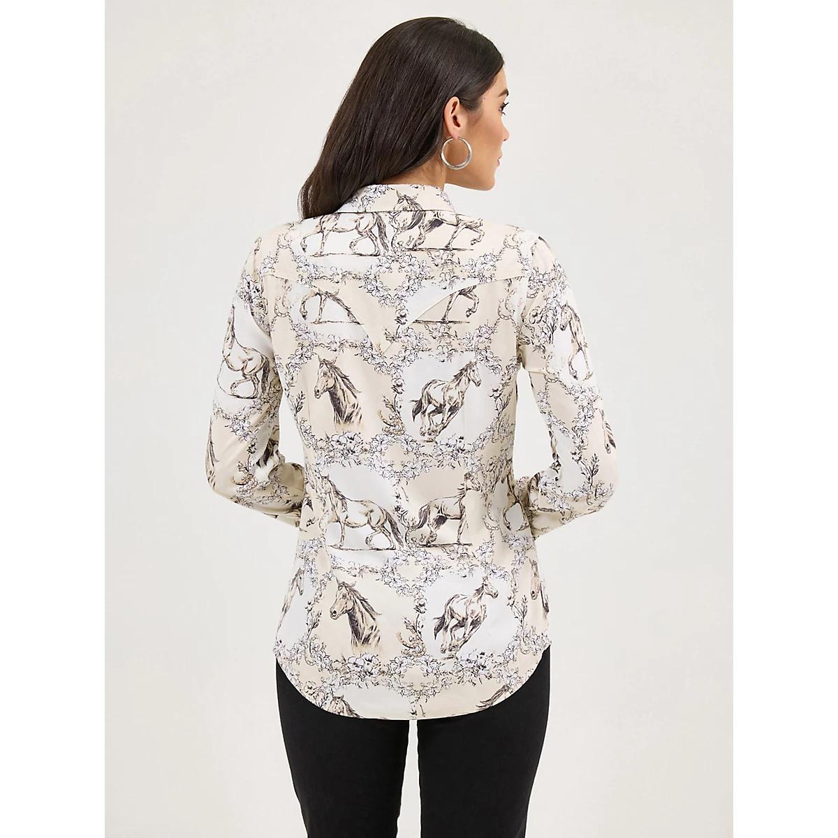 These cowgirl boots are made for walkin'Ready to steal the show, our Women's Wrangler Retro® Saddle Up Western Snap Shirt will take any outfit up a notch. It's super-soft with a colorful print that tells the world where you'd rather be—in the West. It features a slim fit that shows off your curves and a full snap closure for easy layering. Plus, this collared shirt comes with two chest flap pockets, pointed yokes, and a curved hem for extra Western authenticity.