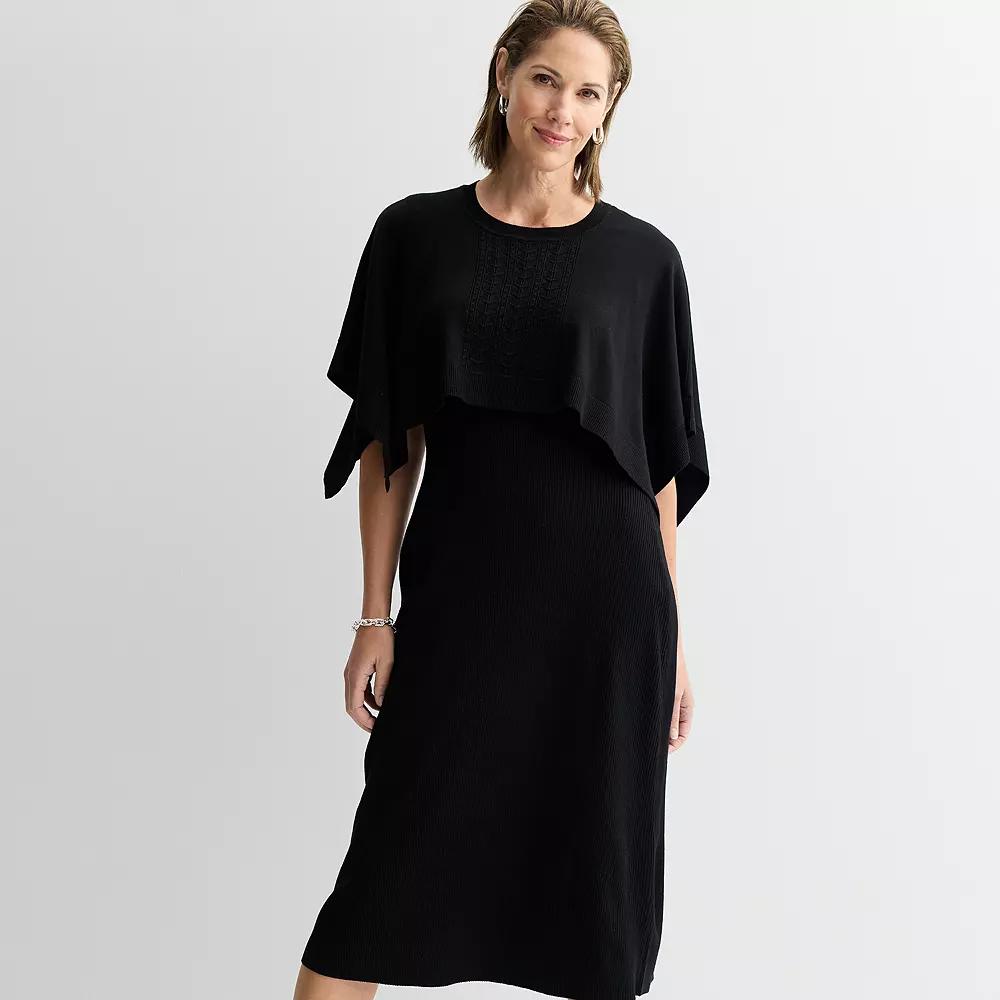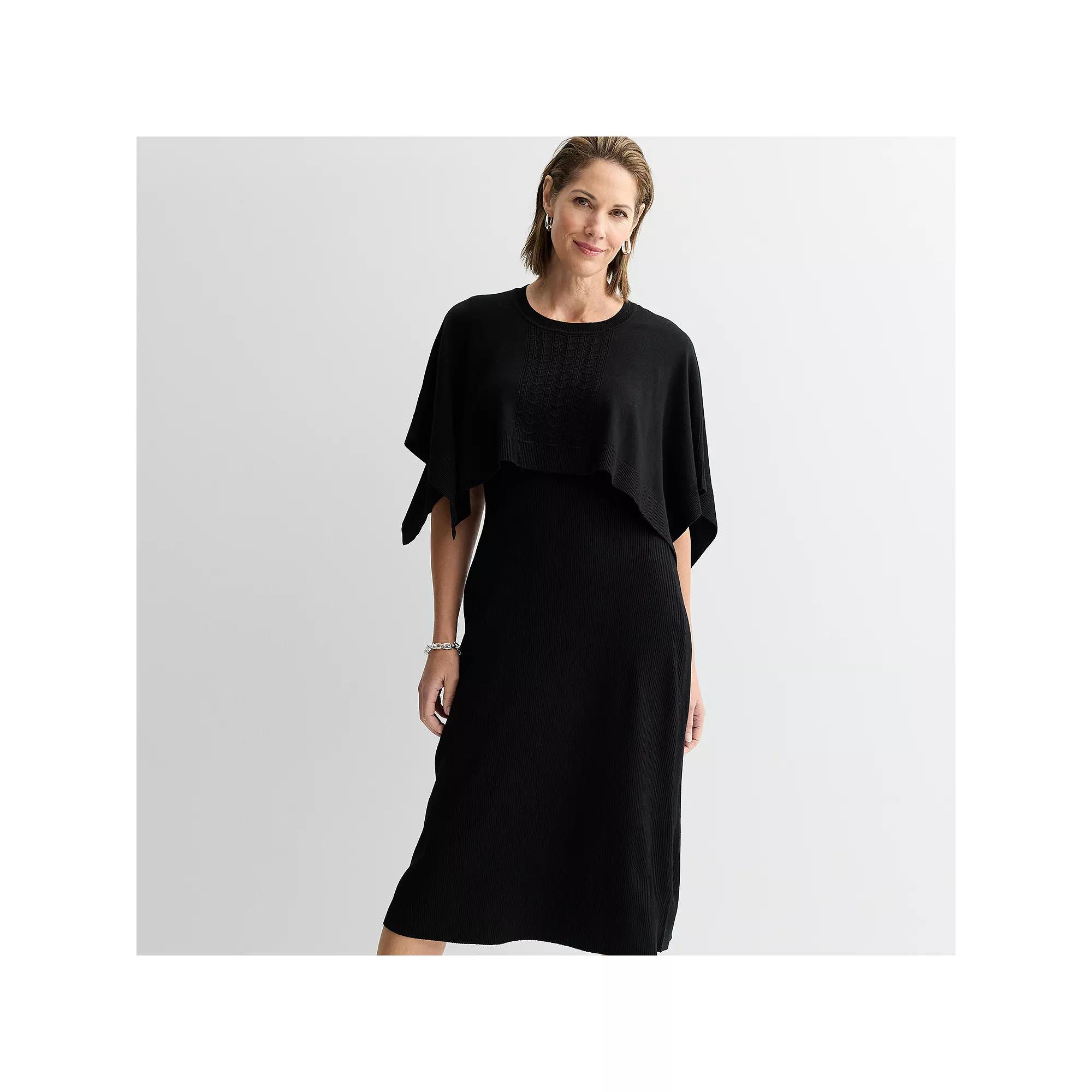 Get ready to steal the spotlight with this stylish sweater dress with attached top from Sandra Darren, designed to flatter and elevate your wardrobe effortlessly. With its chic layered look, you’ll feel both comfortable and confident, perfect for everything from brunch to a night out with friends. Click on this WOMEN'S GUIDE to find the perfect fit and more! - https://www.kohls.com/feature/womens-fit-guide.jsp. FEATURES: Soft knit construction for comfort, Attached top gives a stylish mock 2-piece design. FIT & SIZE: Relaxed fit, Sweaterdress styling, 50-in. length from shoulder to hem, Relaxed fit through the hip and thigh. MATERIAL & CARE: Body: rayon, polyester, Unlined, Machine wash and line dry. DETAILS: No closure - pullover styling, Scoopneck, Short sleeves, Imported. Size: Xxl. Color: Black. Gender: female. Age Group: adult.