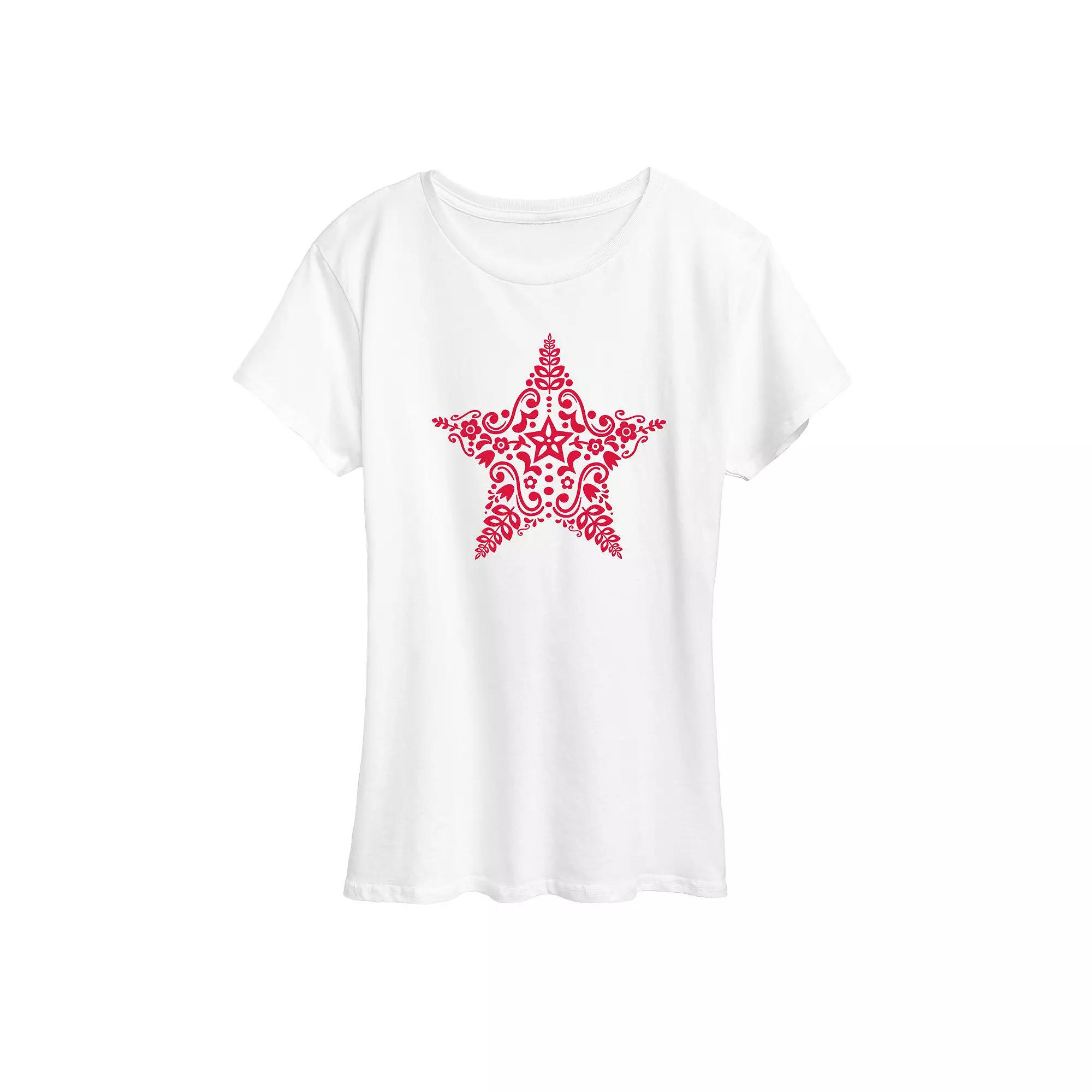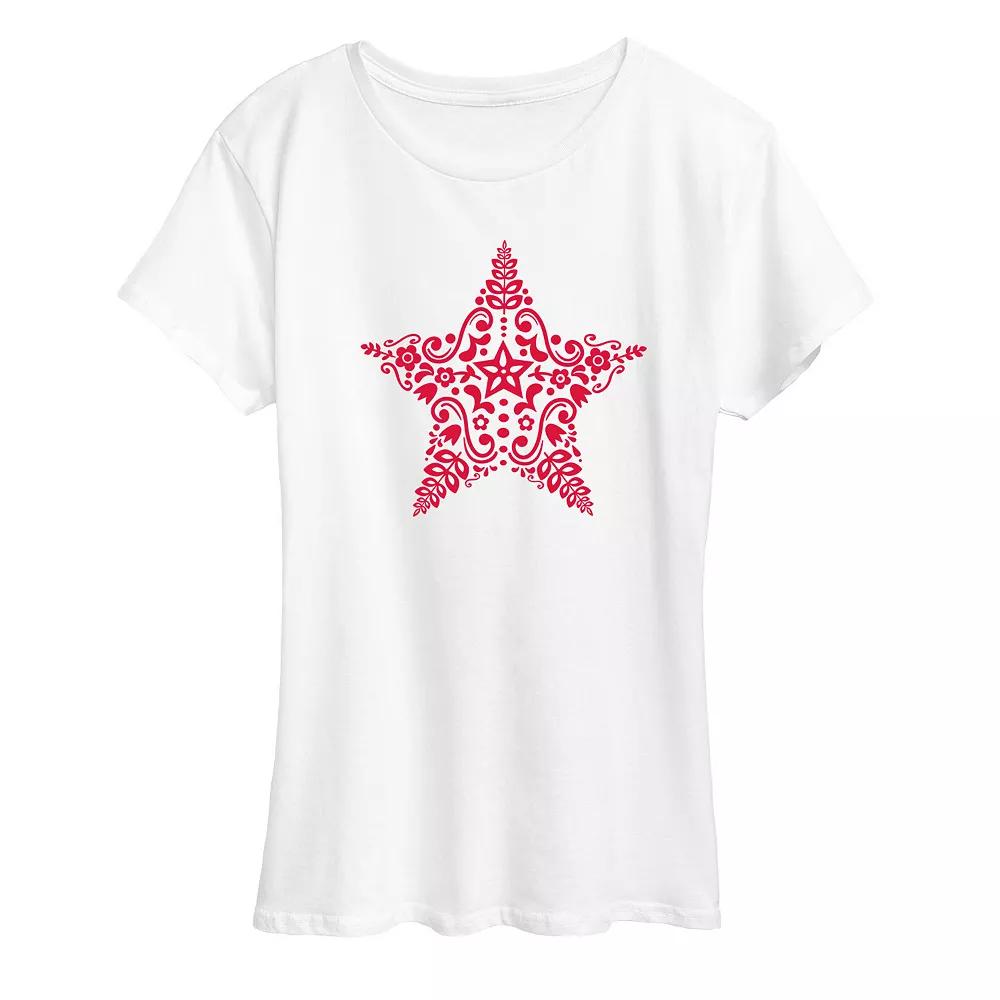Shell love the look and feel of this Womens Scandinavian Star Graphic Tee. Shell love the look and feel of this Womens Scandinavian Star Graphic Tee. FEATURES Crewneck Short SleevesFABRIC & CARE Solid: Cotton Heather: Cotton/Polyester Machine wash Imported Size: X Large. Color: White. Gender: female. Age Group: adult.