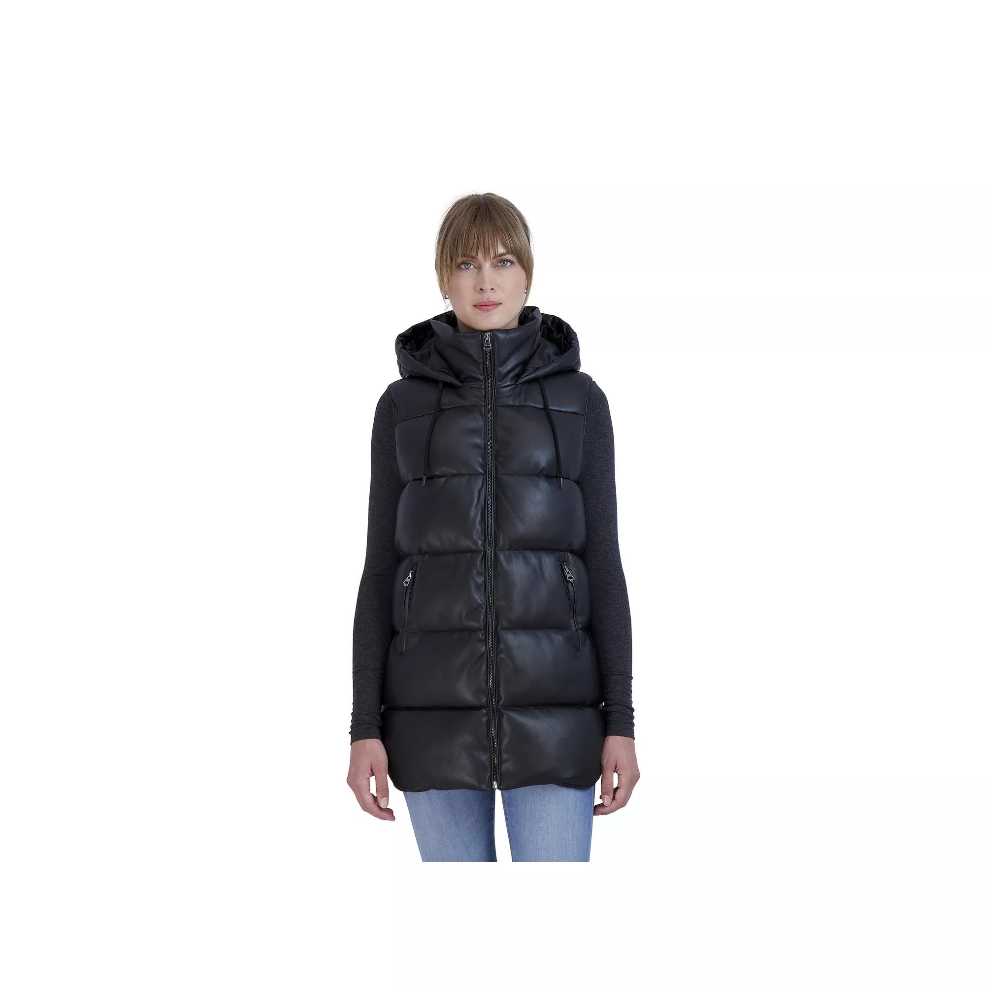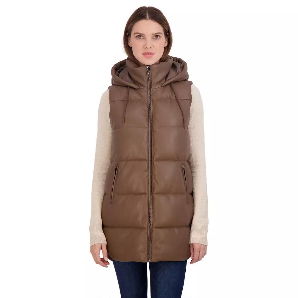Add an edgy touch to your fall wardrobe with this women's faux-leather puffer vest from Sebby Collection. Click on this WOMEN'S GUIDE to find the perfect fit and more! - https://www.kohls.com/feature/womens-fit-guide.jsp. Puffer design, Faux-leather construction, Removable hood, Zipper closure, 2 pockets. FIT & SIZING: Designed to hit just below the waist, Drawstring hem, Midweight. FABRIC & CARE: Polyurethane, Lining: polyester, Machine wash - Delicate, Imported. Size: Large. Color: Medium Brown. Gender: female. Age Group: adult.