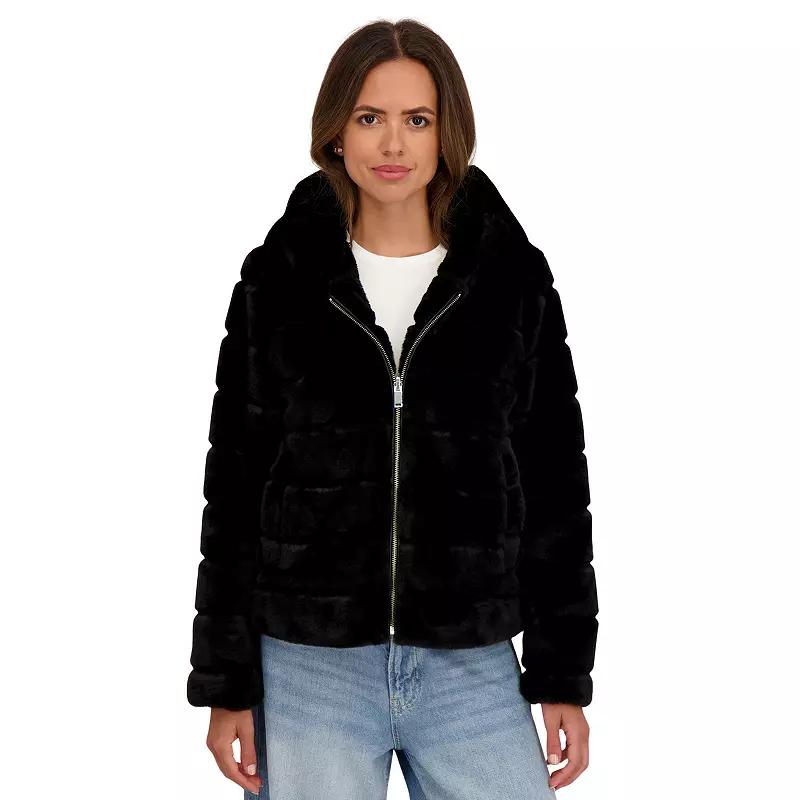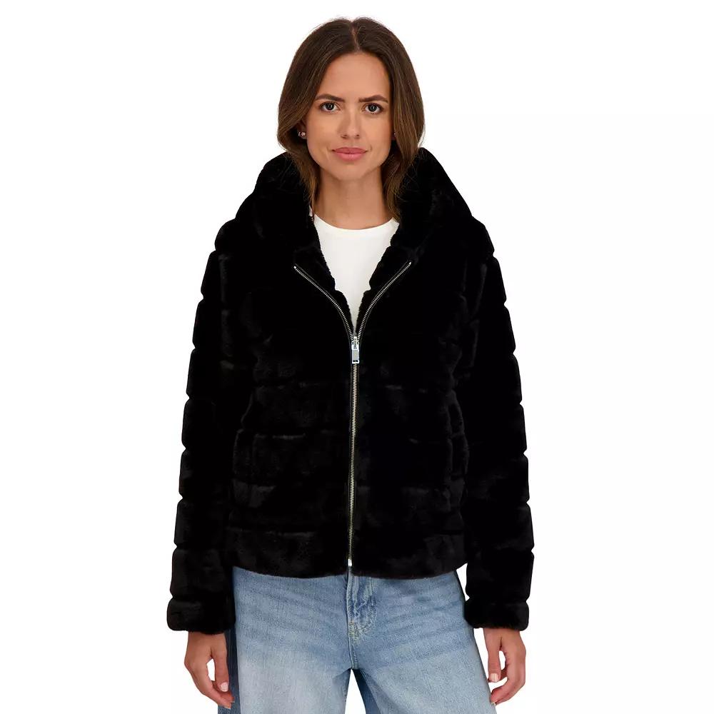 Embrace cozy style with the Sebby Collection reversible faux fur hooded zip front jacket, designed to keep you snug and chic on chilly days. Featuring a soft, plush finish, this versatile piece lets you switch up your look while providing warmth and comfort—perfect for layering over your favorite outfits. Click on this WOMEN'S GUIDE to find the perfect fit and more! - https://www.kohls.com/feature/womens-fit-guide.jsp. FEATURES: Soft cozy faux fur for ultimate comfort, Reversible design for versatile styling. FIT & SIZE: Contemporary fitted fit, 24-in. length from shoulder to hem, Designed to hit at the waist. DETAILS: Attached hood, Long sleeves, Zipper front, 2 Front welt pockets, Imported. MATERIAL & CARE: Body and lining: polyester, Machine wash and line dry. Size: Medium. Color: Black. Gender: female. Age Group: adult.
