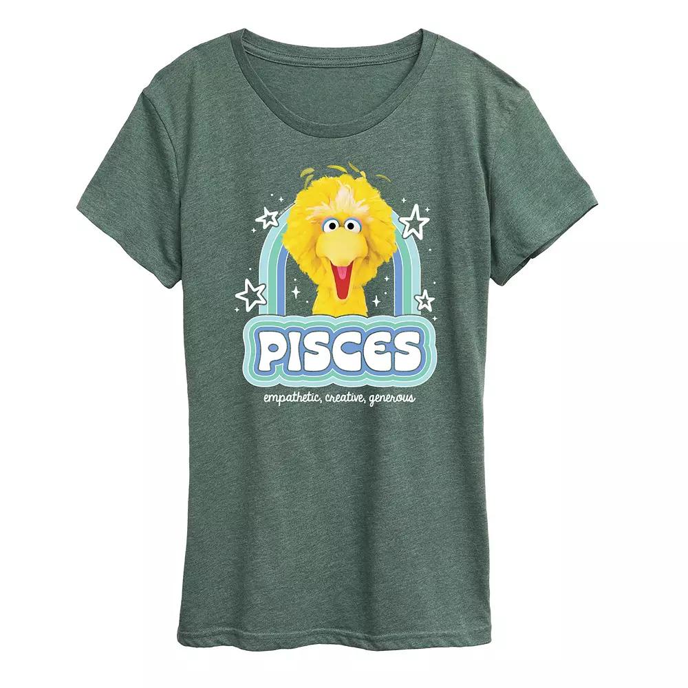 She will love showing off her style with this Womens Sesame Street Pisces Big Bird Graphic Tee. FEATURES Short sleeves CrewneckFABRIC & CARE Solid Colors: Cotton ; Heather Colors: Cotton/Polyester Machine wash Imported Size: X Large. Color: Green. Gender: female. Age Group: adult.