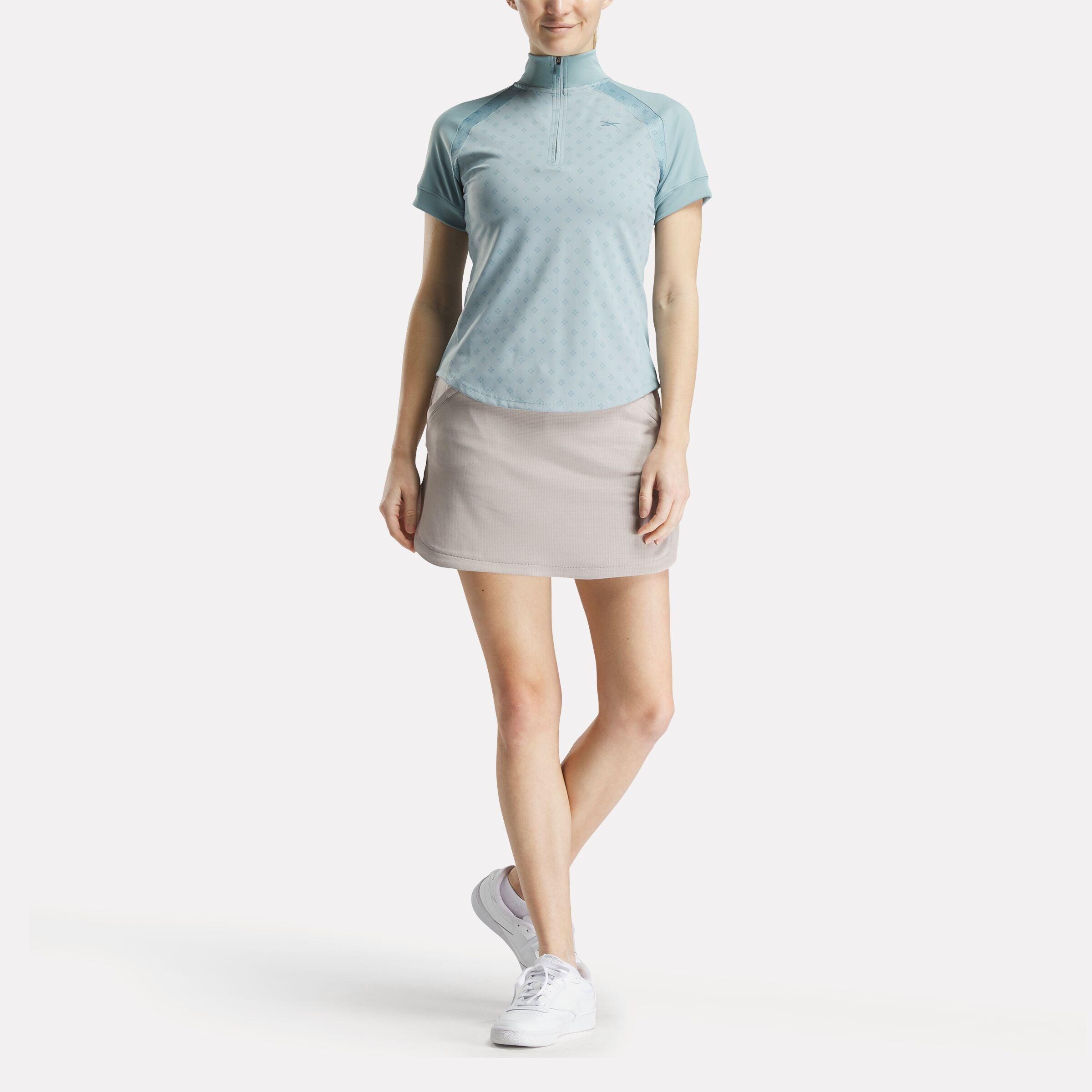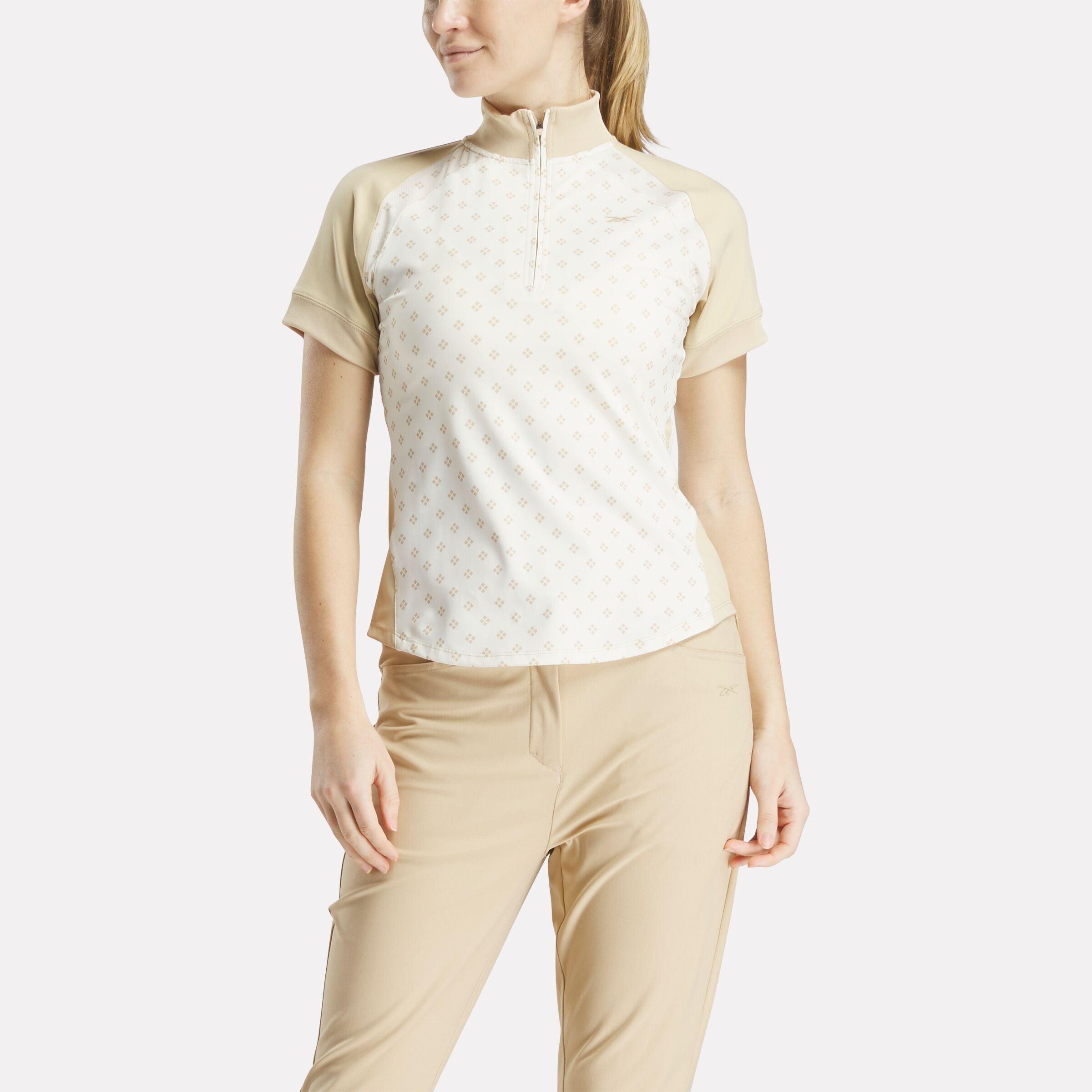 A quarter-zip golf top with sweat-wicking techAdd a modern spin to your golf look in this women's Reebok top. It's made of comfortable stretch fabric, with a quarter-zip design so you can choose your level of coverage. A mini argyle print playfully reinterprets heritage links style.
