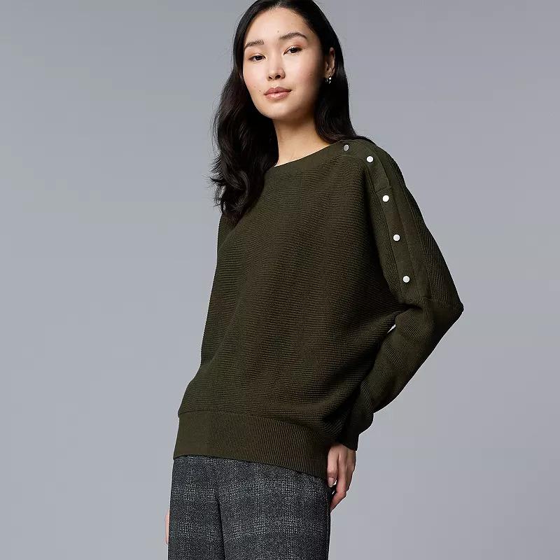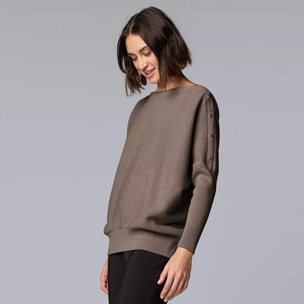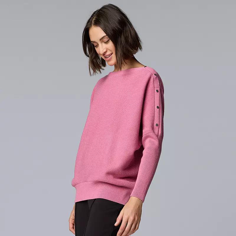 Elevate your everyday look with the effortlessly stylish Dolman Snap Sweater from Simply Vera Vera Wang. This versatile piece features a relaxed fit and chic snap details, making it perfect for layering over your favorite tank or pairing with jeans for a casual outing or lounging at home. Click on this WOMEN'S GUIDE to find the perfect fit and more! - https://www.kohls.com/feature/womens-fit-guide.jsp. FEATURES: Straight hem, Ribbed cuffs, Set-in long sleeves, Boatneck neckline. FIT & SIZING: Lightweight sweater: a breezy essential with an easy fit, ideal for mild days or indoor comfort, 22 1/2-in. length from shoulder to hem. FABRIC & CARE: Cotton, viscose, nylon, Machine wash, Imported. Size: Small. Color: Blue Feather. Gender: female. Age Group: adult. Material: POLY BLEND.