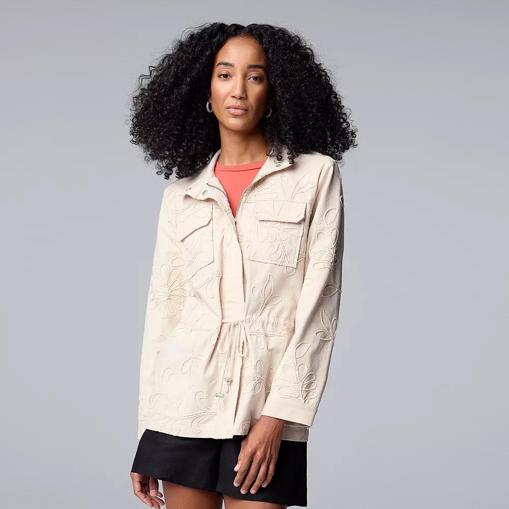 Finish up your look with this women's Simply Vera Vera Wang embroidered utility jacket. Click on this WOMEN'S GUIDE to find the perfect fit and more!Finish up your look with this women's Simply Vera Vera Wang embroidered utility jacket. Click on this WOMEN'S GUIDE to find the perfect fit and more!FEATURES Long sleeves Set-in sleeves 2 front patch pockets Button & zipper closure Straight hemFIT & SIZING 28-in. length from shoulder to hemFABRIC & CARE Cotton Dry clean ImportedRESPONSIBLE Supports more sustainable cotton farming Size: Xxl. Color: White Cedarwood. Gender: female. Age Group: adult.