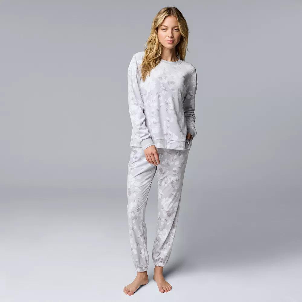 The Simply Vera Vera Wang Long Sleeve Pajama Top and Pajama Bottoms Set offers a luxurious and cozy sleepwear option specifically designed for a petite frame. This set provides ultimate comfort for peaceful nights and lazy mornings, all with a relaxed and chic fit. Click on this INTIMATES & SLEEPWEAR GUIDE to find the perfect fit and more! - https://www.kohls.com/feature/womens-sleepwear-and-intimates-guide.jsp. FEATURES: Super soft stretch velour. FIT & SIZE: Relaxed fit, Banded hem, Super high rise sits on the natural waistline, Petite: 26-in inseam, Banded leg opening, 7 3/4-in leg opening, Covered elastic waistband. DETAILS: Includes top and bottoms, No closure - pull-on styling, Scoopneck, Long sleeves, Drop-shoulder sleeves, Elastic cuffs, 2 side seam pockets, Imported. MATERIAL & CARE: Polyester, spandex, Unlined, Machine wash and tumble dry low. Size: XS Petite. Color: Lt Grey Floral. Gender: female. Age Group: adult. Material: POLY BLEND.