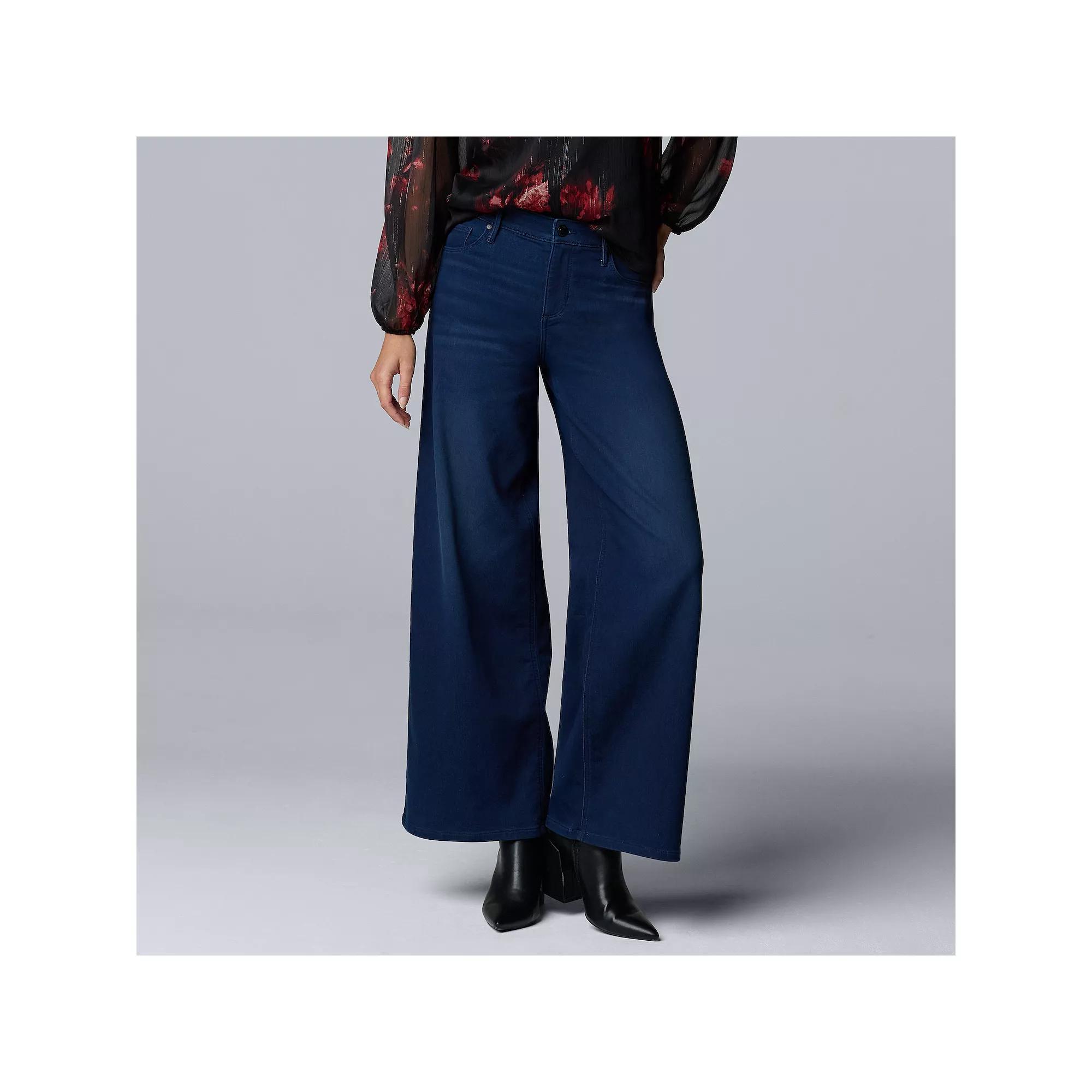 Revamp your wardrobe with the effortless charm of knit denim wide leg jeans that give you the perfect blend of comfort and style. Simply Vera Vera Wang brings you a fashion-forward take that keeps you looking chic while making sure you can kick back and relax, whether you're out with friends or lounging at home. Click on this WOMEN'S GUIDE to find the perfect fit and more! - https://www.kohls.com/feature/womens-fit-guide.jsp. FEATURES: Stylish knit denim wide leg design. FIT & SIZE: Relaxed fit through the hip and thigh, Midrise sits on the high hip, 31-in. inseam, Wide 13-in. leg opening. MATERIAL & CARE: Soft handfeel construction, Cotton, polyester, spandex, Machine wash and tumble dry low. DETAILS: Button & zipper closure, 3 front pockets & 2 back pockets. RESPONSIBLE Supports more sustainable cotton farming, Tested for harmful substances, STANDARD 100 by OEKO-TEX® CERTIFIED, Certification No. 2021OK2154, Testing Institute: Testing Institute: AITEX®, www.oeko-tex.com/standard100. Size: 4. Color: Dark. Gender: female. Age Group: adult.