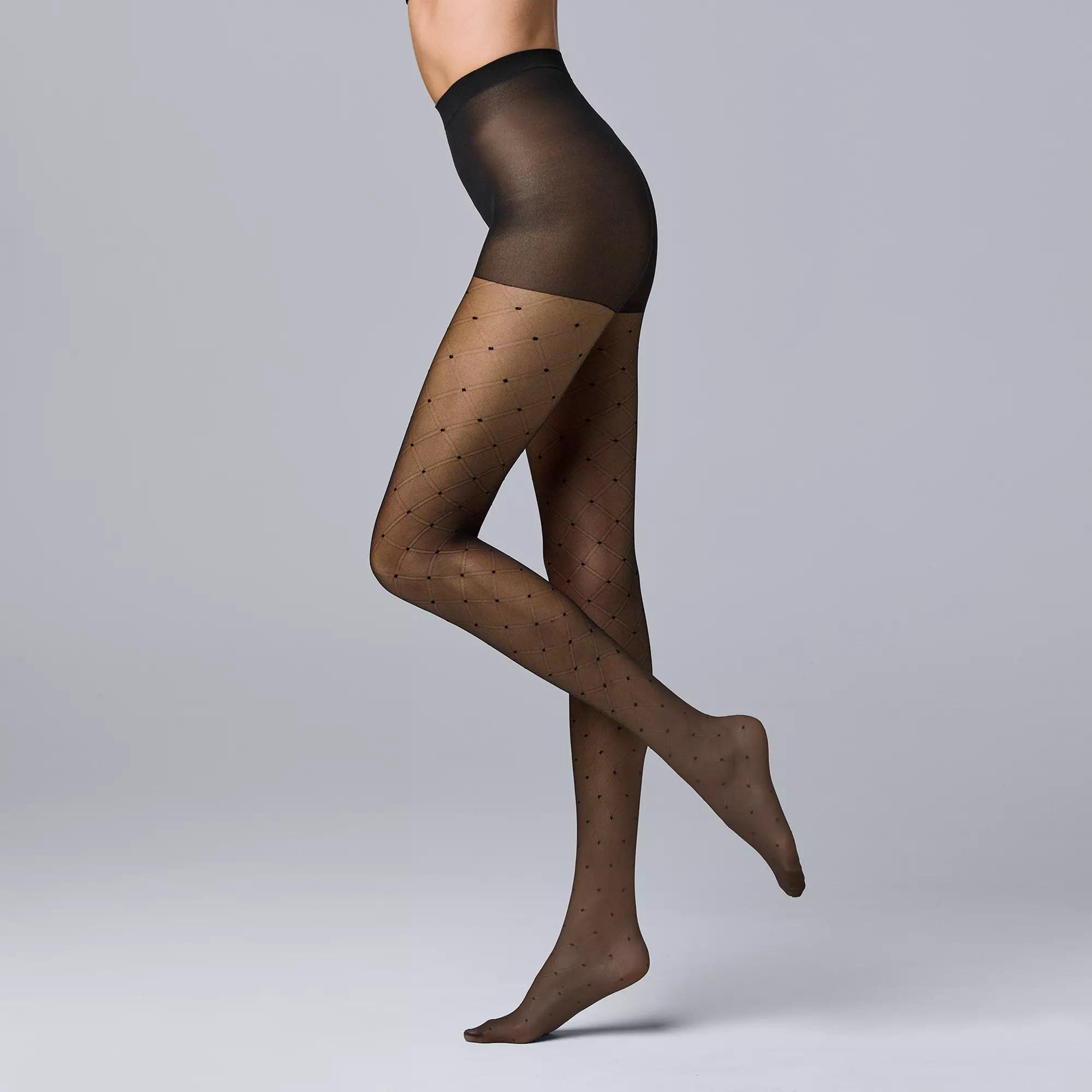 Give your accessories collection a refresh with these womens Simply Vera Vera Wang sheer opaque 30D grid dot tights. Give your accessories collection a refresh with these womens Simply Vera Vera Wang sheer opaque 30D grid dot tights. FEATURES 30 denier opacity Elastic wasitband Control top shaping technologyFABRIC & CARE Nylon Hand wash Imported Color: Black. Gender: female. Age Group: adult.