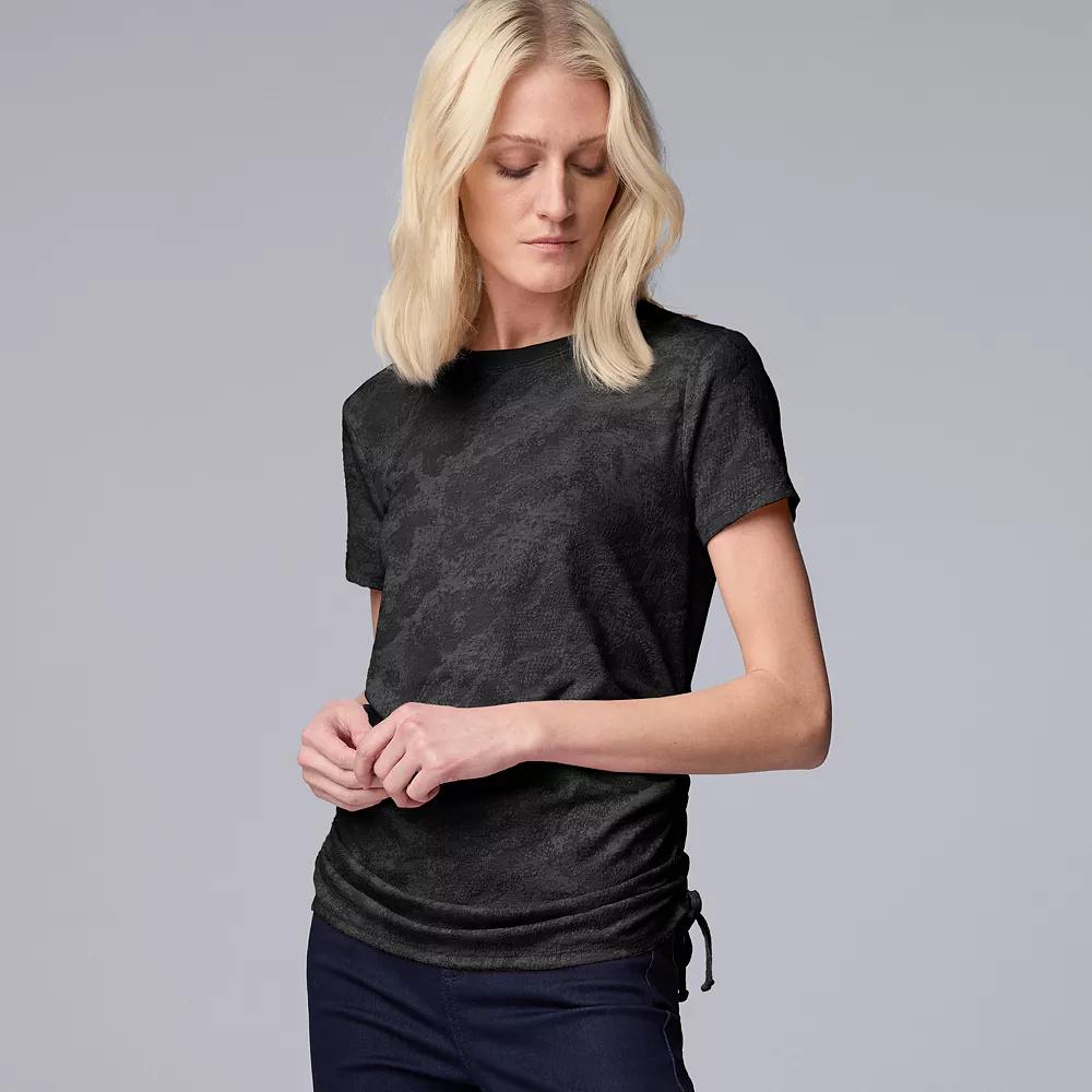 Elevate your everyday wearing this Women's Simply Vera Vera Wang Side Ruched Top.Click on this WOMEN'S GUIDE to find the perfect fit and more!Elevate your everyday wearing this Women's Simply Vera Vera Wang Side Ruched Top. Click on this WOMEN'S GUIDE to find the perfect fit and more!FEATURES Crewneck Short sleeves Side ruching Straight hem Pullover stylingFIT & SIZING Regular fit 28 1/2-in. length from shoulder to hemFABRIC & CARE Polyester, rayon, spandex Machine wash and tumble dry low Imported Size: X Large. Color: Dark Orbit Heather. Gender: female. Age Group: adult.