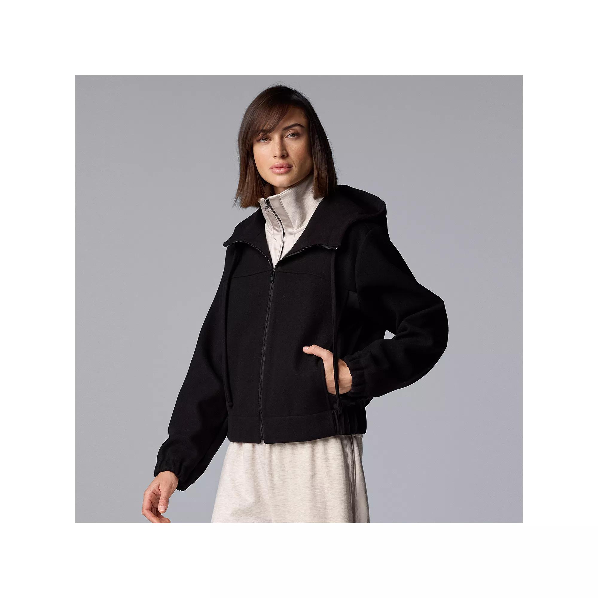 Stay chic and cozy with the Simply Vera Vera Wang Short Hooded Jacket. This stylish layer offers versatile wear and a sleek design for cooler days.Click on this WOMENS GUIDE to find the perfect fit and more!FEATURES 2 pockets Elastic hem Attached hood Zipper closure Elastic cuffs Drop-shoulder sleeves Long sleeves Fully linedFIT & SIZING 23 1/4-in. length from shoulder to hemFABRIC & CARE 90% Polyester, 10% Rayon Machine wash and tumble dry low Imported /* desktop styles */ #aboutTheBrandTabContent h2 { font: 1.25em Gotham 7r, Helvetica, Arial, sans-serif; color: #3e3935; padding-top: .75em; } #aboutTheBrandTabContent p { font: .88em/1.62 Gotham 5r, Helvetica, Arial, sans-serif; } #aboutTheBrandTabContent a { font: .88em Gotham 5r, Helvetica, Arial, sans-serif; } /* mcom styles */ #acc-aboutTheBrand h2 { font: 1.25em Gotham 7r, Helvetica, Arial, sans-serif; color: #3e3935; padding-top: .75em; text-align: center; } #acc-aboutTheBrand p{ font: 1.06em/1.62 Gotham 5r, Helvetica, Arial, sans-serif; width: auto; text-align: center; } #acc-aboutTheBrand a{ font: 1.1em Gotham 5r, Helvetica, Arial, sans-serif; width: auto; text-align: center; } The collection exemplifies everyday sophistication and accessible luxury.Simply Vera Vera Wang is designed for those who appreciate effortless style and know that it is the small signature details that make all the difference. Shop the Simply Vera Vera Wang Collection Now.Shop the Simply Vera Vera Wang Collection Now. Size: X Large. Color: Black. Gender: female. Age Group: adult.