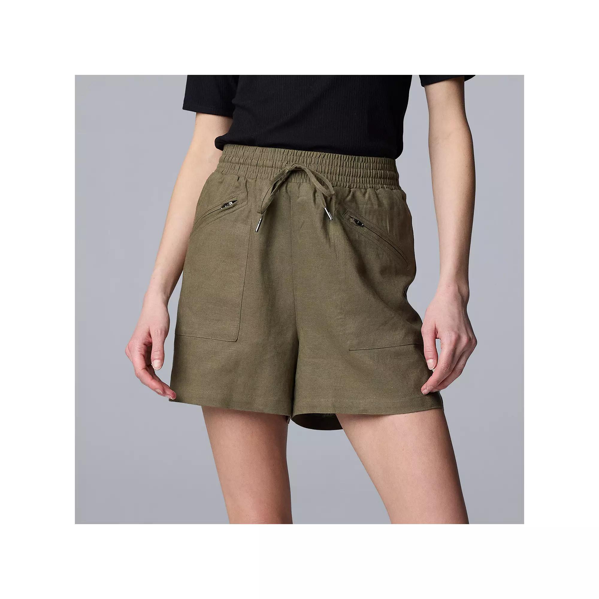 Be prepared for warm summer days with these womens Simply Vera Vera Wang zip front shorts. Click on this WOMENS GUIDE to find the perfect fit and more!Be prepared for warm summer days with these womens Simply Vera Vera Wang zip front shorts. Click on this WOMENS GUIDE to find the perfect fit and more!FEATURES Drawstring elastic waistband 2 front functional patch pockets & 2 back functional patch pockets Straight hem Partially lined Pull-on styling Plain weave constructionFIT & SIZING Regular fit 4 1/2-in. inseam 14 1/2-in. leg opening High rise sits below the natural waistline Relaxed fit through the hip and thighFABRIC & CARE Rayon, linen Vera flax: linen, viscose Polyester lining Machine wash Imported Size: X Large. Color: Kalamata Olive. Gender: female. Age Group: adult.