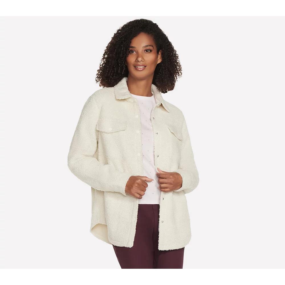 Elevate your casual look with this stylish shacket from Skechers, combining function and flair. Featuring a snap button front and convenient chest pockets, it's perfect for layering on cool days while adding a touch of polished warmth to any ensemble. Click on this WOMEN'S GUIDE to find the perfect fit and more! - https://www.kohls.com/feature/womens-fit-guide.jsp. FEATURES: 100% Polyester construction for durability, Snap button front closure for easy wear, Front chest pockets for added convenience, Classic collar design for a timeless look, Contains faux fur for added warmth and comfort, SKECH-SHERPA technology for enhanced insulation. FIT & SIZE: 30-inch length from shoulder to hem, Relaxed fit, Shirttail hem. DETAILS: Long sleeves, Snap front closure, Two front chest pockets., Imported. MATERIAL & CARE: 100% Polyester, Sherpa, Machine wash - delicate. Size: Small. Color: Stream. Gender: female. Age Group: adult. Material: OTHER MATERIAL.