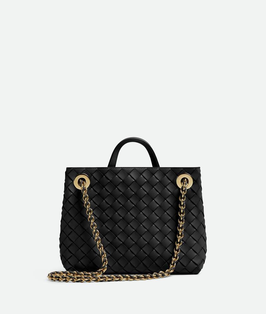 • Small Intrecciato leather top handle bag with sliding cross-body chain• Compartmented interior with one zippered pocket, two open pockets• Magnetic closure