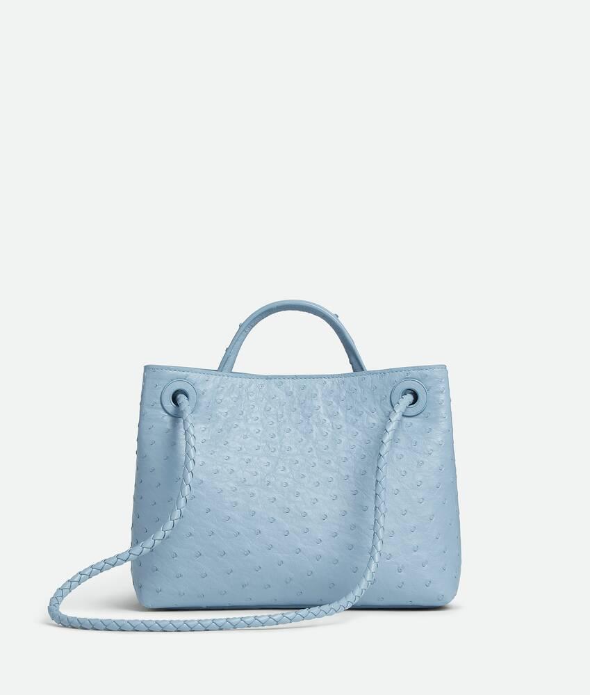 • Small ostrich leather top-handle bag with sliding cross-body strap• Compartmented interior with one zipped pocket, one open pocket• Magnetic closure