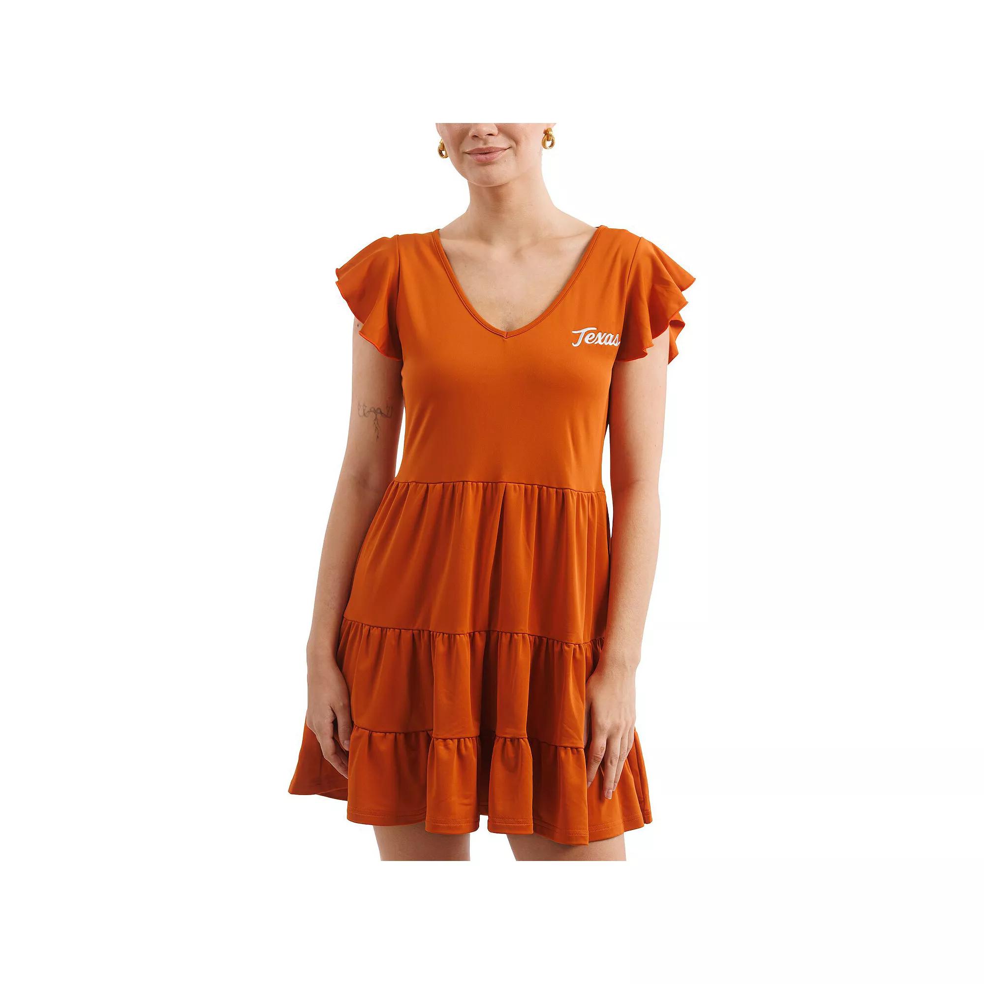 Turn heads this game day with this Texas Longhorns Tailgate Collection Delaney Dress from Smith & Quinn. Designed to create a flattering silhouette, this classy Texas Longhorns dress is also made from breathable fabric, making it the perfect balance between style and comfort.Turn heads this game day with this Texas Longhorns Tailgate Collection Delaney Dress from Smith & Quinn. Designed to create a flattering silhouette, this classy Texas Longhorns dress is also made from breathable fabric, making it the perfect balance between style and comfort.PRODUCT FEATURESBrand: Smith & QuinnOfficially licensedMachine wash, drip dryXXS: 00-0, XS: 0-2, S: 4-6, M: 8-10, L: 12, XL: 14, XXL: 16Waist on size small measures approx. 29-30Embroidered team logoMaterial: 95% Polyester/5% ElastaneRuffled details on shoulder and along hemShort sleeveImported Gender: female. Age Group: adult. Material: Cotton.