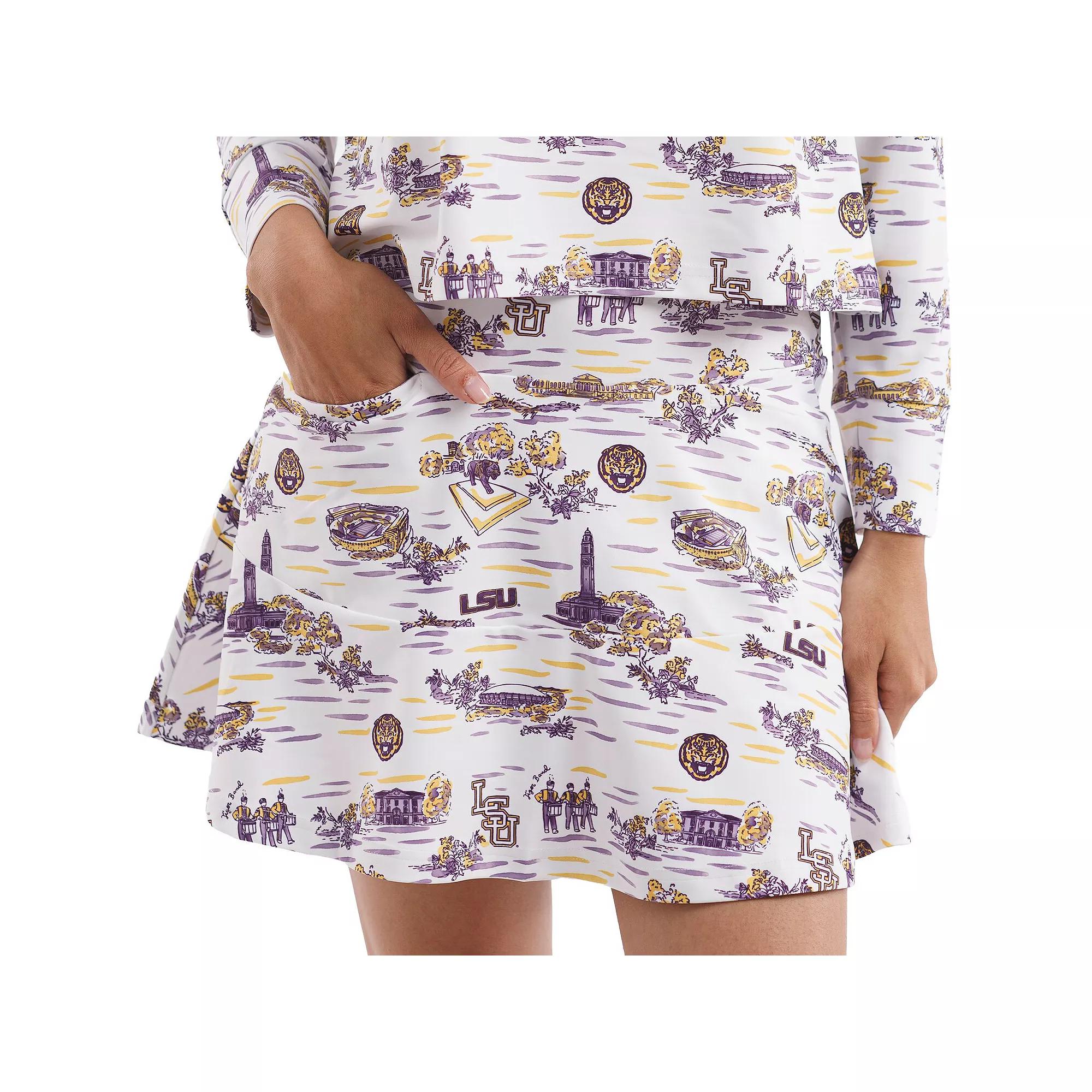 Bring a touch of class to the tailgate and beyond with this LSU Tigers Tailgate Collection Molly Skort from Smith & Quinn. With Italian matte stretch fabric and a ruffle hem add a feminine touch to this functional LSU Tigers skort. Pair it with your favorite top for the ultimate game day look.Bring a touch of class to the tailgate and beyond with this LSU Tigers Tailgate Collection Molly Skort from Smith & Quinn. With Italian matte stretch fabric and a ruffle hem add a feminine touch to this functional LSU Tigers skort. Pair it with your favorite top for the ultimate game day look.PRODUCT FEATURESXXS: 00-0, XS: 0-2, S: 4-6, M: 8-10, L: 12, XL: 14, XXL: 16Made with S&Q Signature Italian Matte Stretch fabricMaterial: 50% Viscose/45% Polyester/5% ElastaneMachine wash, drip dryImportedElastic waistbandOfficially licensedWaist on size small measures approx. 29-30Sublimated team graphicsOut seam measures approx. 16Flutter details on hemFront pockets and back welt pocketBrand: Smith & Quinn Color: White. Gender: female. Age Group: adult.