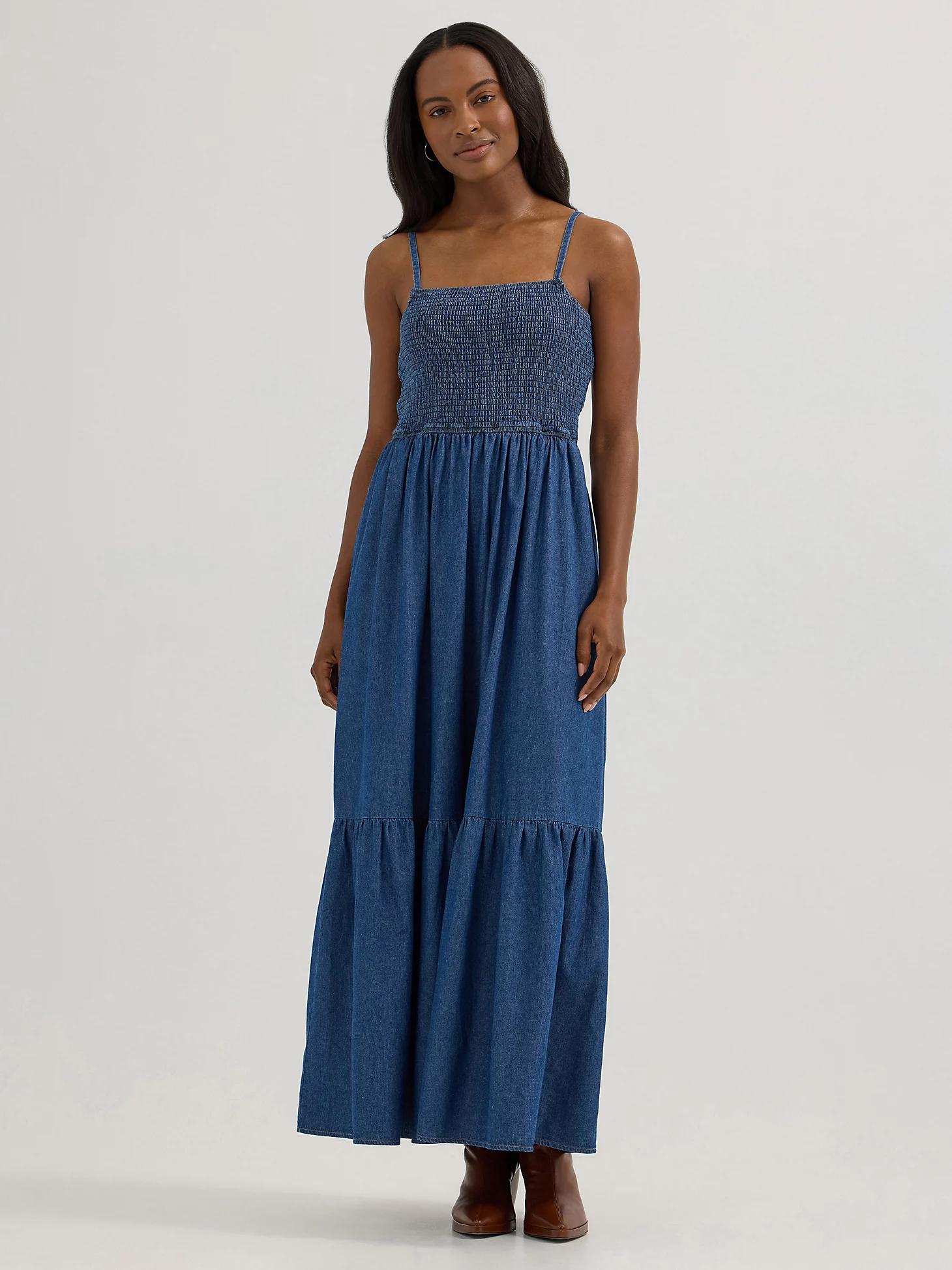 Women's Smocked Bodice Denim Maxi Dress | Women's DRESSES & JUMPSUITS | Wrangler®