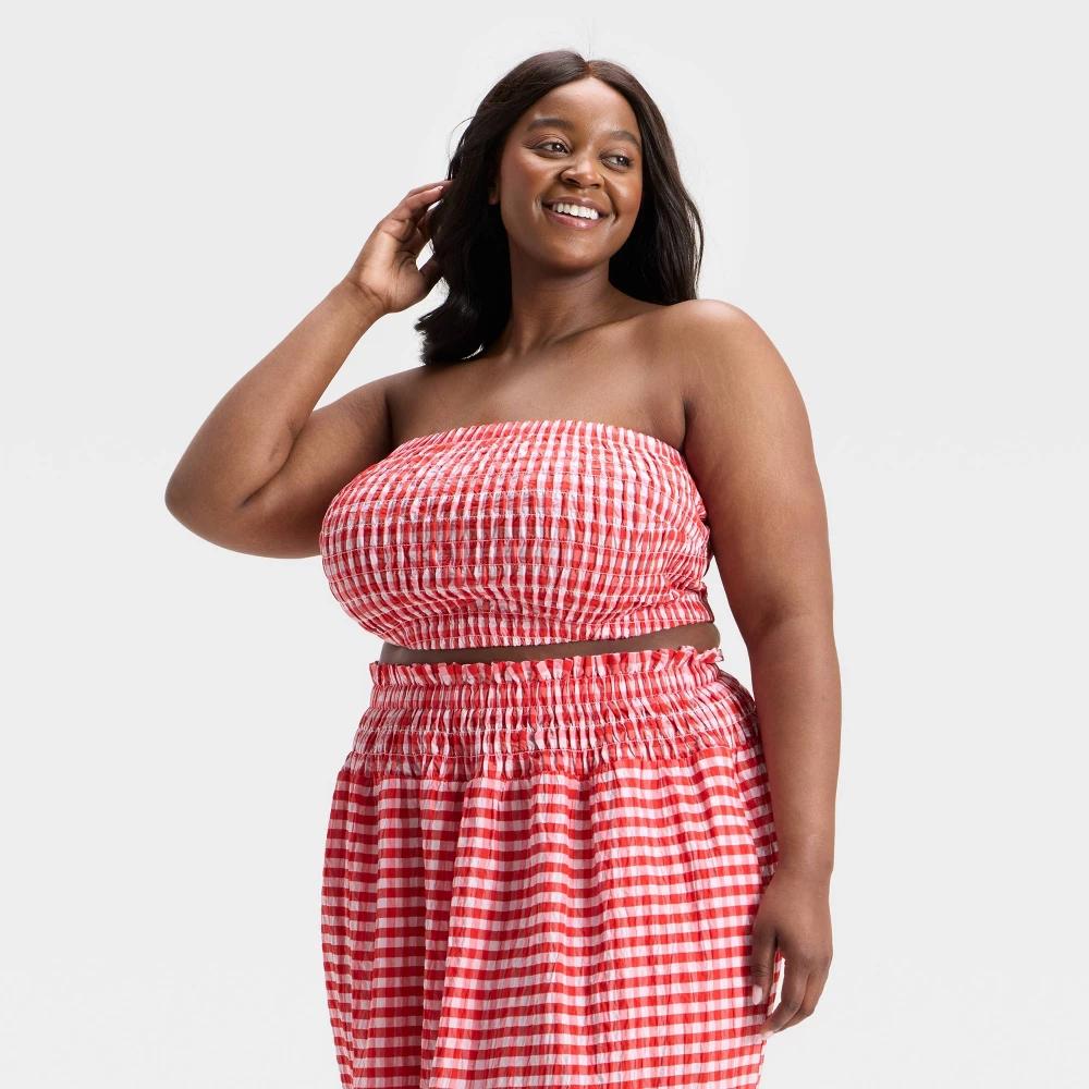 FULL TILT Gingham Smocked Womens Tube Top - RED