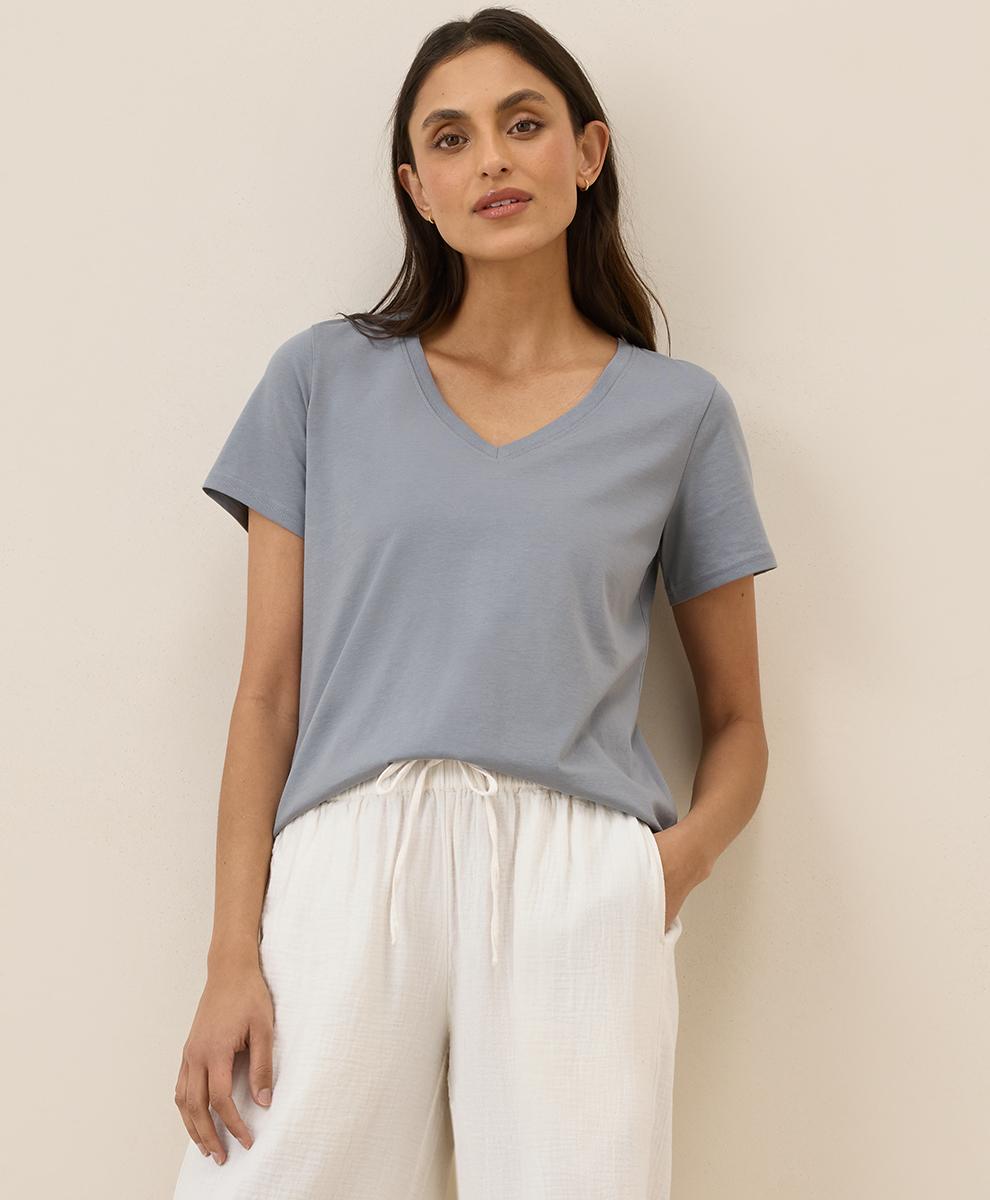 Pact Organic Womens Smoke Blue Softspun V-Neck Tee
