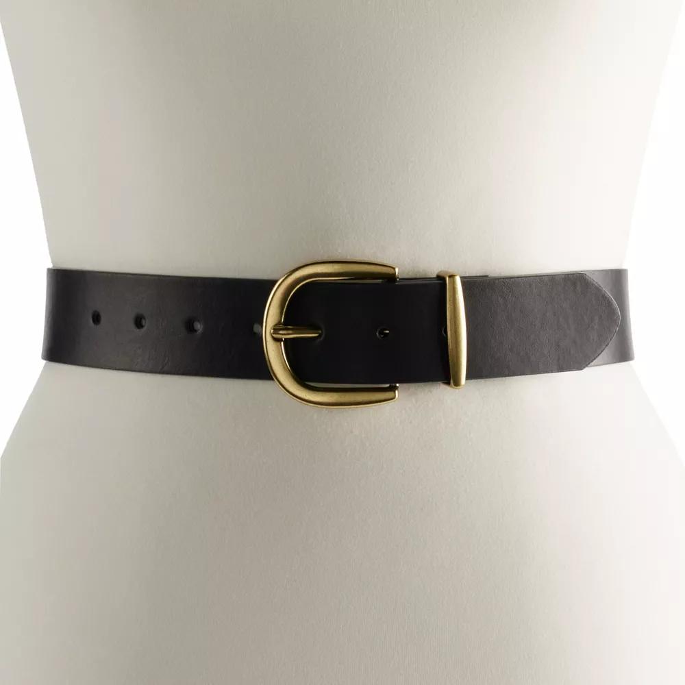 This versatile harness buckle belt from Sonoma Goods For Life is a must-have staple. This versatile harness buckle belt from Sonoma Goods For Life is a must-have staple. D-shaped gold tone buckleCONSTRUCTION & CARE Manmade material Spot clean Imported Size: Medium. Color: Black. Gender: female. Age Group: adult.