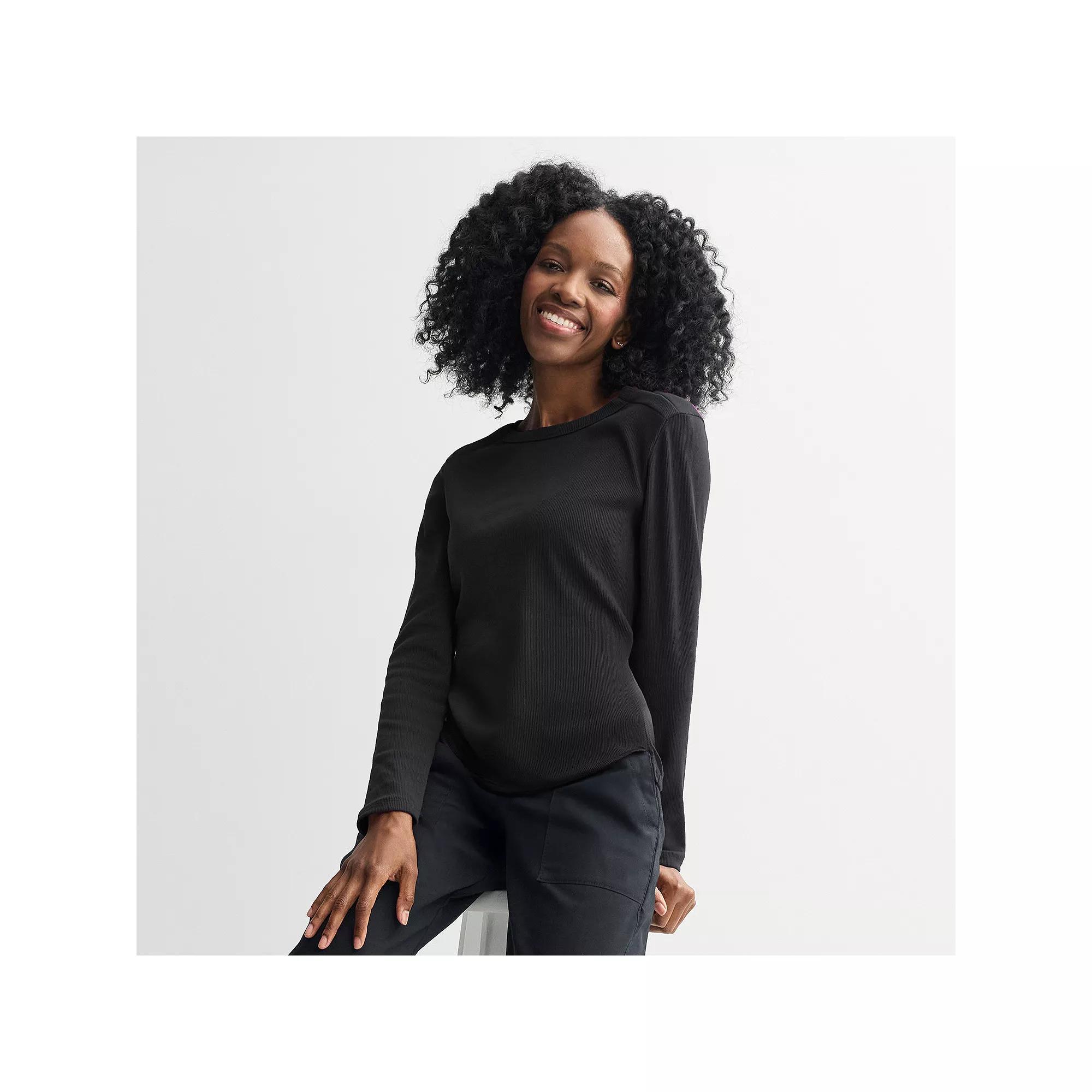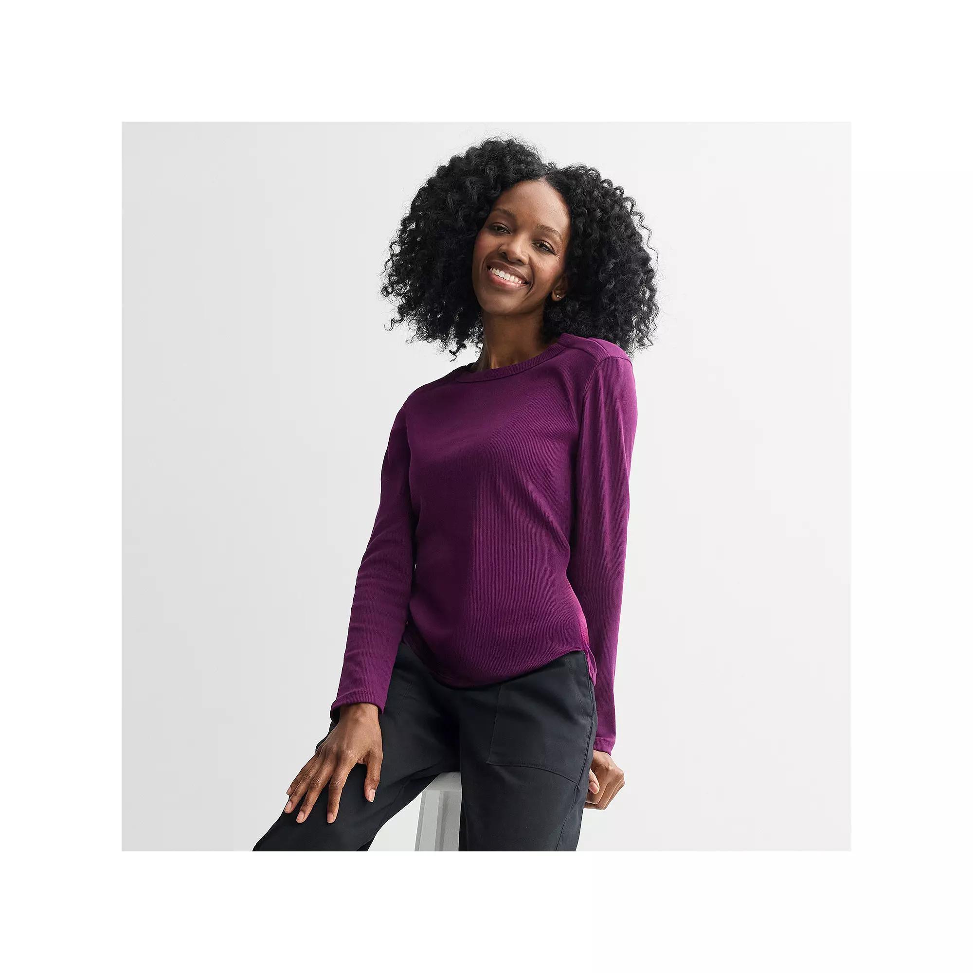 Experience effortless comfort with this versatile long sleeve tee from Sonoma Goods For Life®. Designed for easy wear, it’s the perfect addition to your wardrobe, making it ideal for layering under jackets or pairing with your favorite jeans for a relaxed yet stylish look. Click on this ADAPTIVE GUIDE to find out about fit, functionality and more! - https://www.kohls.com/feature/adaptive-clothing-guide.jsp?icid=adaptiveguide. ADAPTIVE FEATURES: Tag free design for added comfort. Neckline opens larger to allow for easy dressing with hidden hook and loop closure. FEATURES: Crewneck, Hook & loop closure, Set-in long sleeves, Straight hem. FIT & SIZING: Regular fit, 26 1/4-in. length. FABRIC & CARE: Cotton, polyester, elastane rib knit, Machine wash, Imported. RESPONSIBLE Supports more sustainable cotton farming. Color: Fragrant Plum. Gender: female. Age Group: adult. Material: COTTON BLEND.