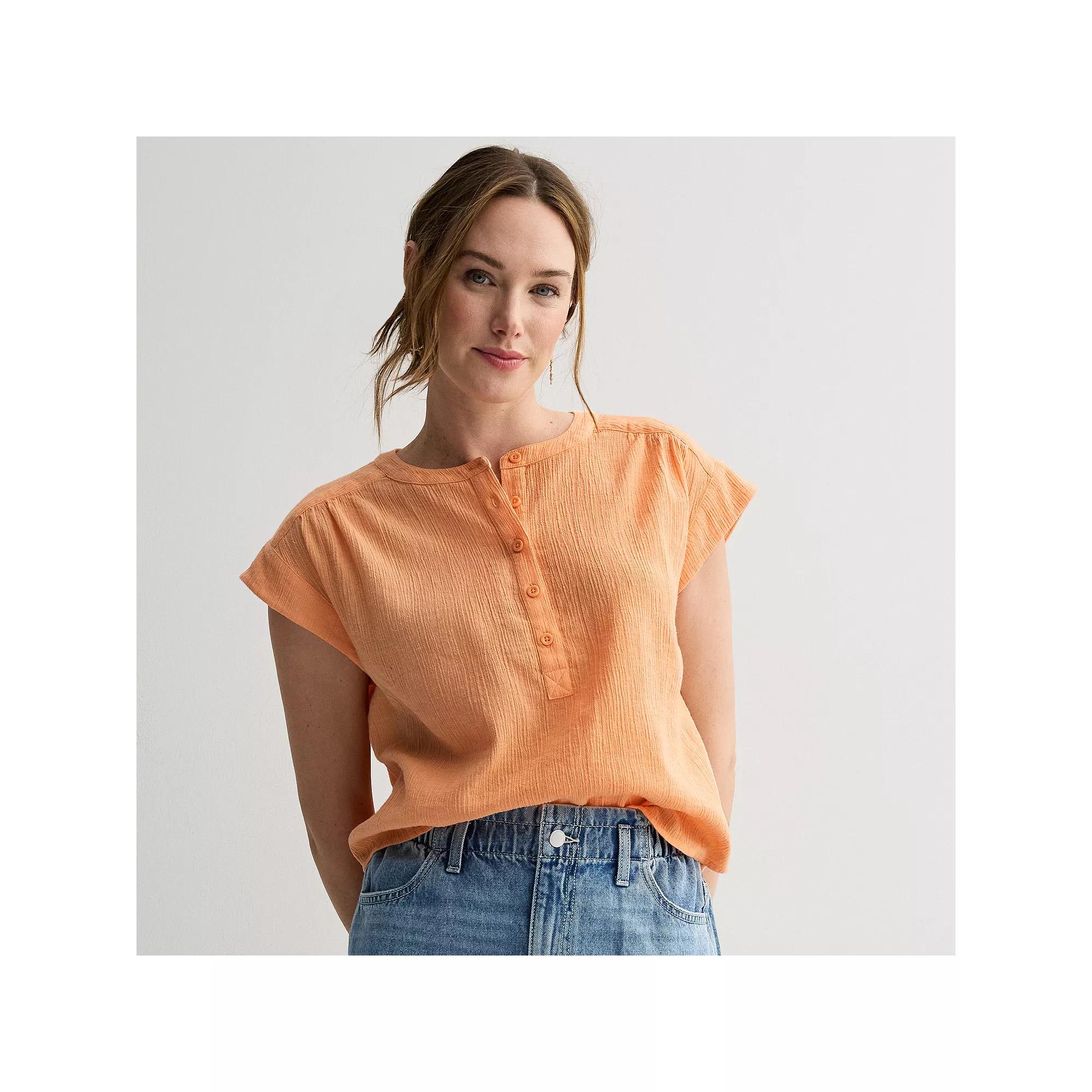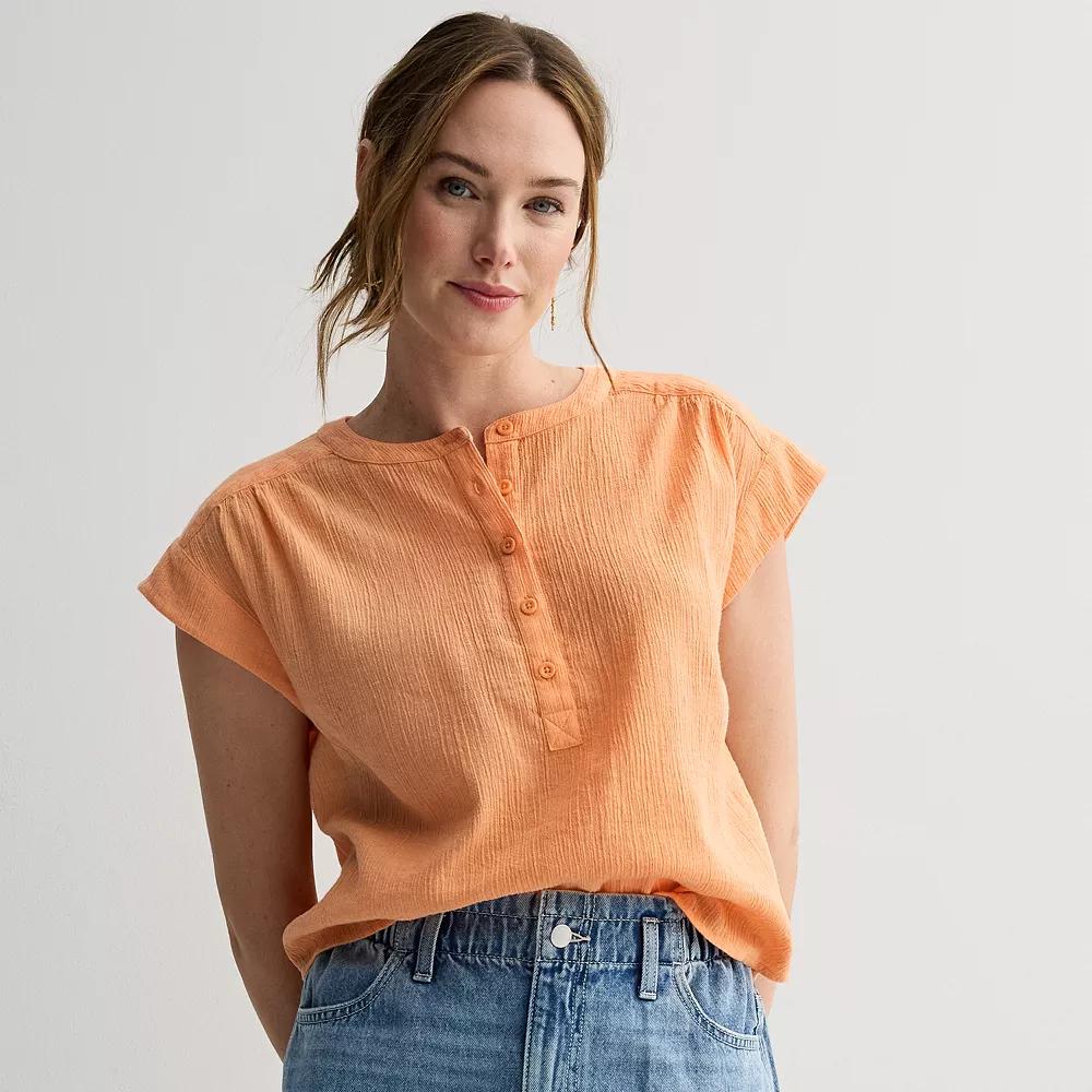 You'll love the casual, flowing style of this women's Dolman Sleeve Popover Top from Sonoma Goods For Life.Click on this WOMEN'S GUIDE to find the perfect fit and more!You'll love the casual, flowing style of this women's Dolman Sleeve Popover Top from Sonoma Goods For Life.Click on this WOMEN'S GUIDE to find the perfect fit and more!FEATURES V-neck Button closure Cap sleeves Sewn-rolled cuffs Asymmetrical hem UnlinedFIT & SIZING 24 3/4-in. length from shoulder to hemFABRIC & CARE Cotton, linen Machine wash Imported Size: Xxl. Color: Peach Spritz. Gender: female. Age Group: adult. Material: Cotton Blend.