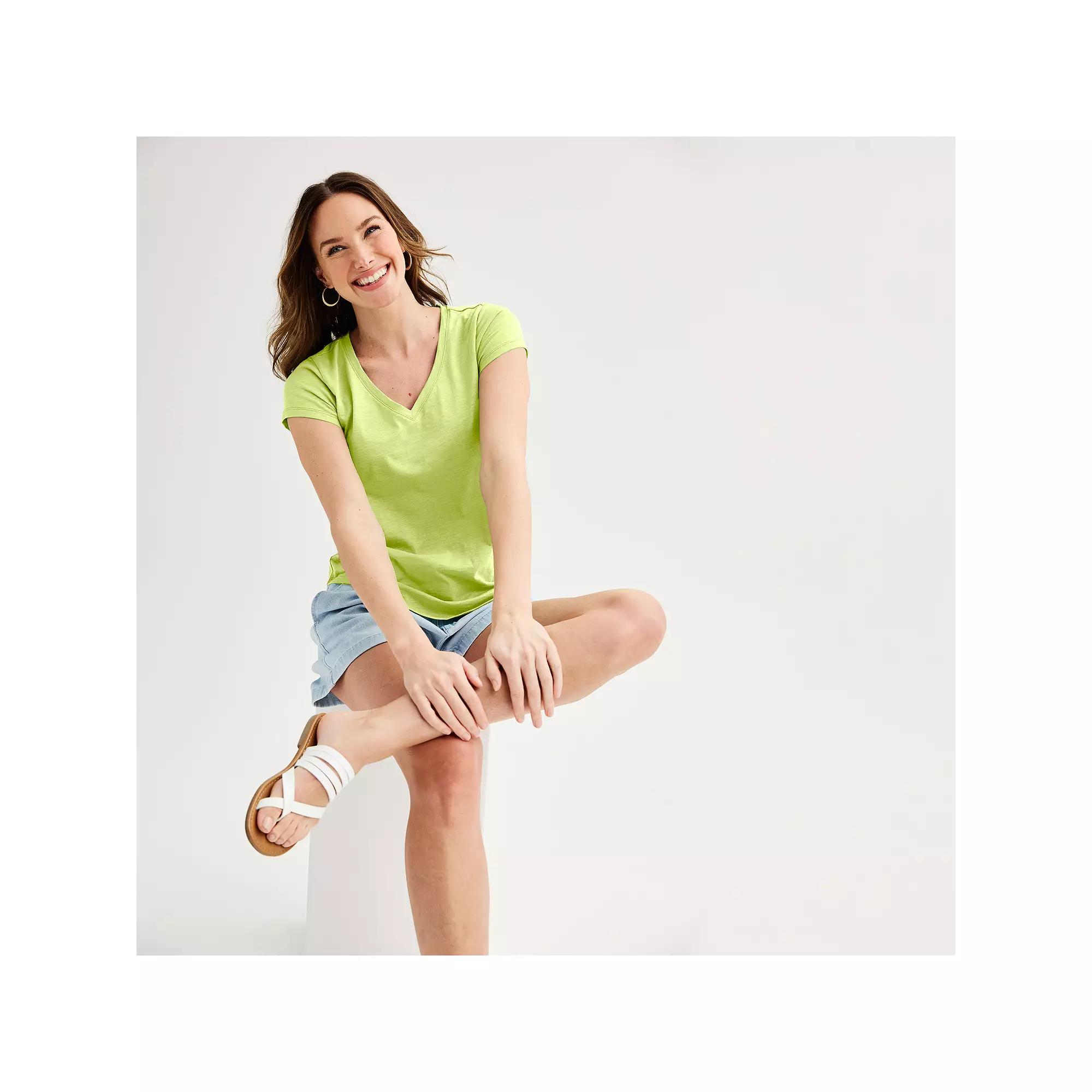 Classic everyday style updated with a new fit. Women's Sonoma Goods For Life® Everyday Short Sleeve V-Neck Tee will be your new go-to tee for any occasion. Click on this WOMEN'S GUIDE to find the perfect fit and more!Classic everyday style updated with a new fit. Women's Sonoma Goods For Life® Everyday Short Sleeve V-Neck Tee will be your new go-to tee for any occasion. Click on this WOMEN'S GUIDE to find the perfect fit and more!FEATURES V-neck Set-in short sleeves Soft jersey construction Curved shirt tail hem Pull-on styleFIT & SIZING 25 1/2-in. length from shoulder to hem Regular fit Pull-on styleRESPONSIBLE Supports more sustainable cotton farming Tested for harmful substances STANDARD 100 by OEKO-TEX® CERTIFIED Certification No. SE020182836 Testing Institute: Testex AG: Swiss Textile Testing Institute www.oeko-tex.com/standard100FABRIC & CARE Cotton, polyester Machine wash ImportedSUSTAINABILITY FEATURES Tested for harmful substances, SE020182836 www.oeko-tex.com/standard100 Testing Institute: Testex AG: Swiss Textile Testing Institute Supports more sustainable cotton farming STANDARD 100 by OEKO-TEX® CERTIFIED,, Size: Xxl. Color: Lime Kiss. Gender: female. Age Group: adult. Material: Cotton Blend.