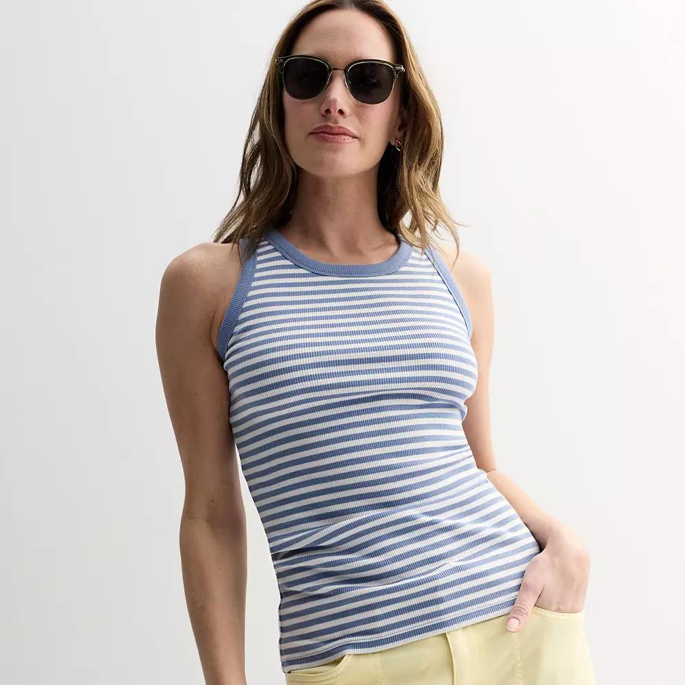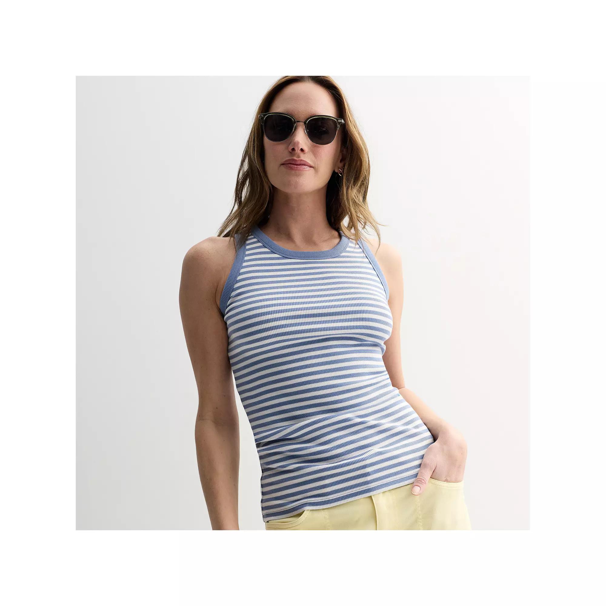 Round out your everyday ensemble with this Women's Sonoma Goods For Life High Neck Layering Tank Top. Click on this WOMEN'S GUIDE to find the perfect fit and more! - https://www.kohls.com/feature/womens-fit-guide.jsp. FEATURES: Crewneck with high neckline, Sleeveless, Straight hem, Ribbed construction. FIT & SIZING: 24 1/2-in. length from shoulder to hem,24-in. length from shoulder to hem. FABRIC & CARE: Cotton, polyester, spandex, Machine wash, Imported. Size: Large. Color: White Stripe. Gender: female. Age Group: adult. Material: COTTON BLEND.