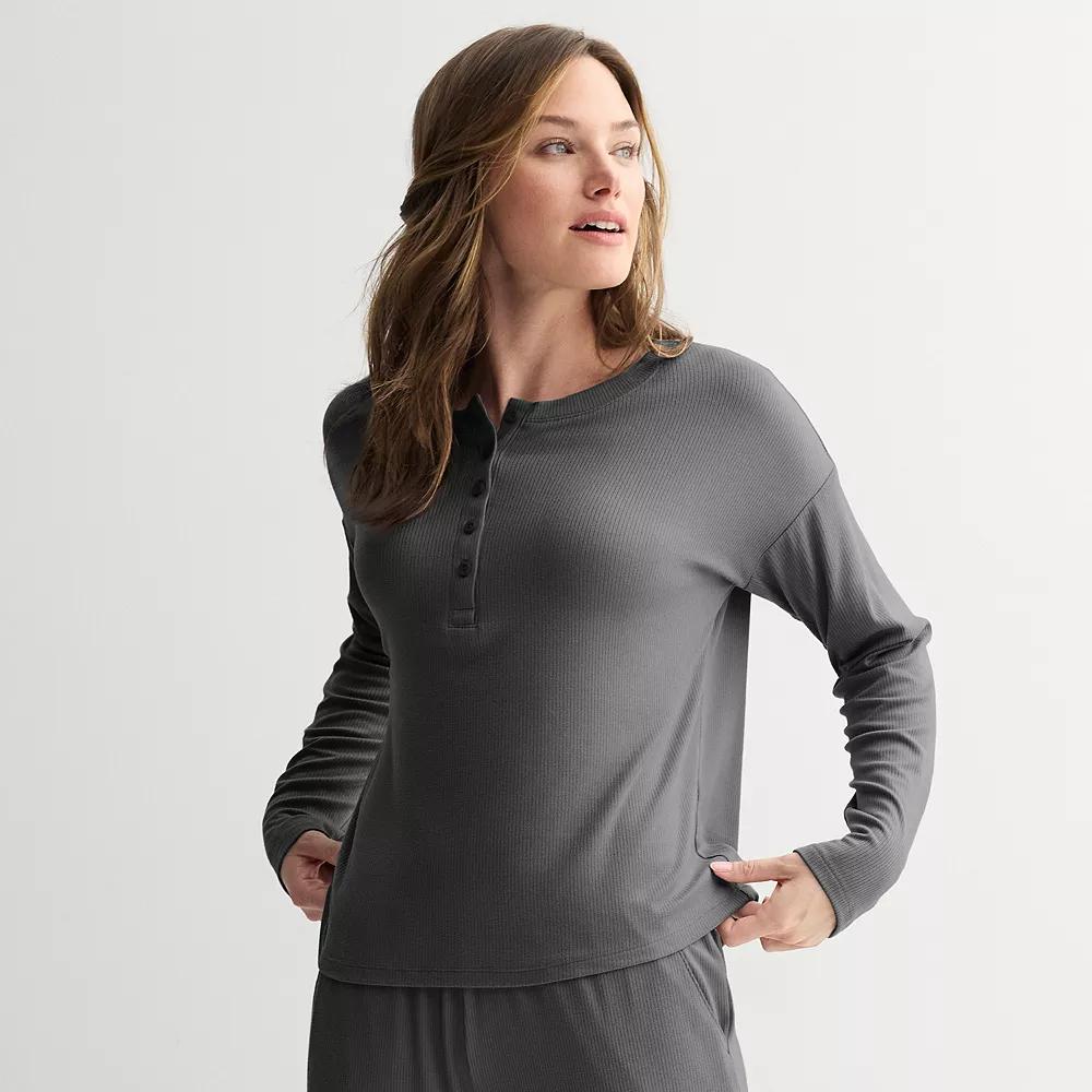 Slip into comfort with Sonoma Goods For Life, where cozy meets stylish in this ribbed long sleeve pajama top. Perfect for those relaxed evenings at home, this top offers a relaxed fit that moves with you, ensuring you enjoy every moment of your unwind time. Click on this INTIMATES & SLEEPWEAR GUIDE to find the perfect fit and more! - https://www.kohls.com/feature/womens-sleepwear-and-intimates-guide.jsp. FEATURES: Crewneck, Long sleeves, Drop-shoulder sleeves, Button front, Straight hem. FIT & SIZING: Regular fit, 23-in. length from shoulder to hem. FABRIC & CARE: Polyester, spandex, Machine wash and tumble dry low, Imported. Size: Large. Color: Basha Brown. Gender: female. Age Group: adult. Material: POLY BLEND.