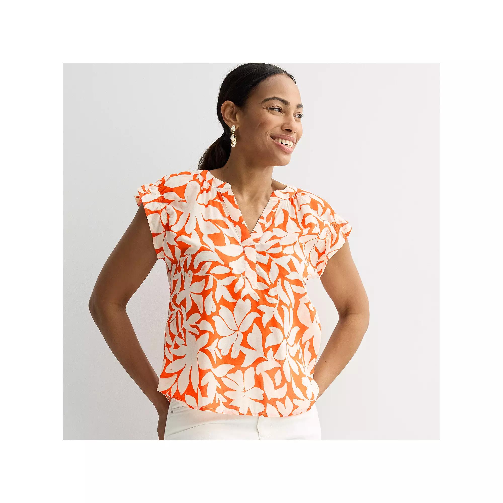 Elevate your casual wardrobe with this women's Sonoma Goods For Life ruffle dolman sleeve shirt. Click on this WOMEN'S GUIDE to find the perfect fit and more!Elevate your casual wardrobe with this women's Sonoma Goods For Life ruffle dolman sleeve shirt. Click on this WOMEN'S GUIDE to find the perfect fit and more!FEATURES Y-neck Short dolman sleeves Shirttail hem Pullover styling Soft-hand feel constructionFIT & SIZING Regular fit 25-in. length from shoulder to hemFABRIC & CARE Cotton, modal Machine wash ImportedRESPONSIBLE Supports more sustainable cotton farming Size: Medium. Color: Orange Painted Floral. Gender: female. Age Group: adult.