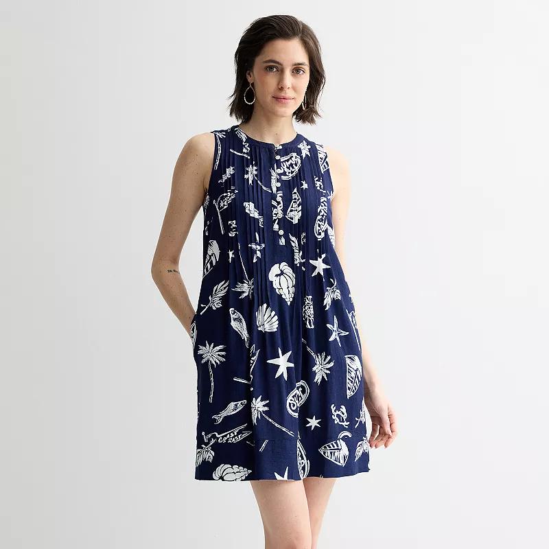 Youll love this chic and flowy Womens Sonoma Goods For Life Sleeveless Pintuck Dress. Click on this WOMENS GUIDE to find the perfect fit and more!Youll love this chic and flowy Womens Sonoma Goods For Life Sleeveless Pintuck Dress. Click on this WOMENS GUIDE to find the perfect fit and more!FEATURES Henley neckline Sleeveless Button front 2 side pockets Shift silhouetteFIT & SIZING Relaxed fit 36 1/2-in. length from shoulder to hem Mini length hits above the kneeFABRIC & CARE Rayon, linen Machine wash Imported Size: Small. Color: Navy Marine Toss. Gender: female. Age Group: adult.
