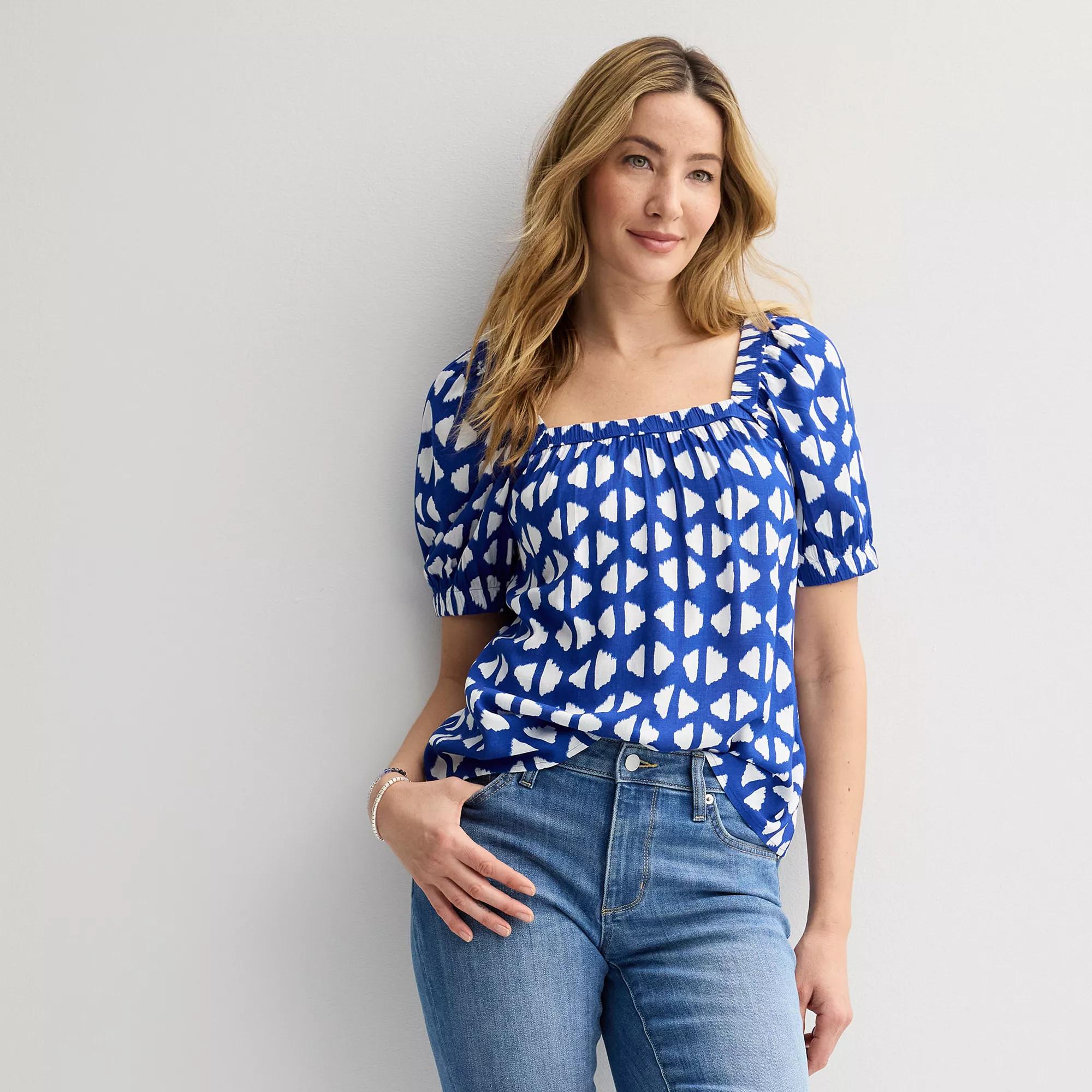 You'll love the flowy style of this Squareneck Peasant Top from Sonoma Goods For Life.Click on this WOMEN'S GUIDE to find the perfect fit and more!You'll love the flowy style of this Squareneck Peasant Top from Sonoma Goods For Life.Click on this WOMEN'S GUIDE to find the perfect fit and more!FEATURES Squareneck Short sleeves Elastic cuffs UnlinedFIT & SIZING Modern fit 25-in. length from shoulder to hemFABRIC & CARE Rayon Machine wash Imported Size: X Small. Color: Navy Triangle Geo. Gender: female. Age Group: adult.