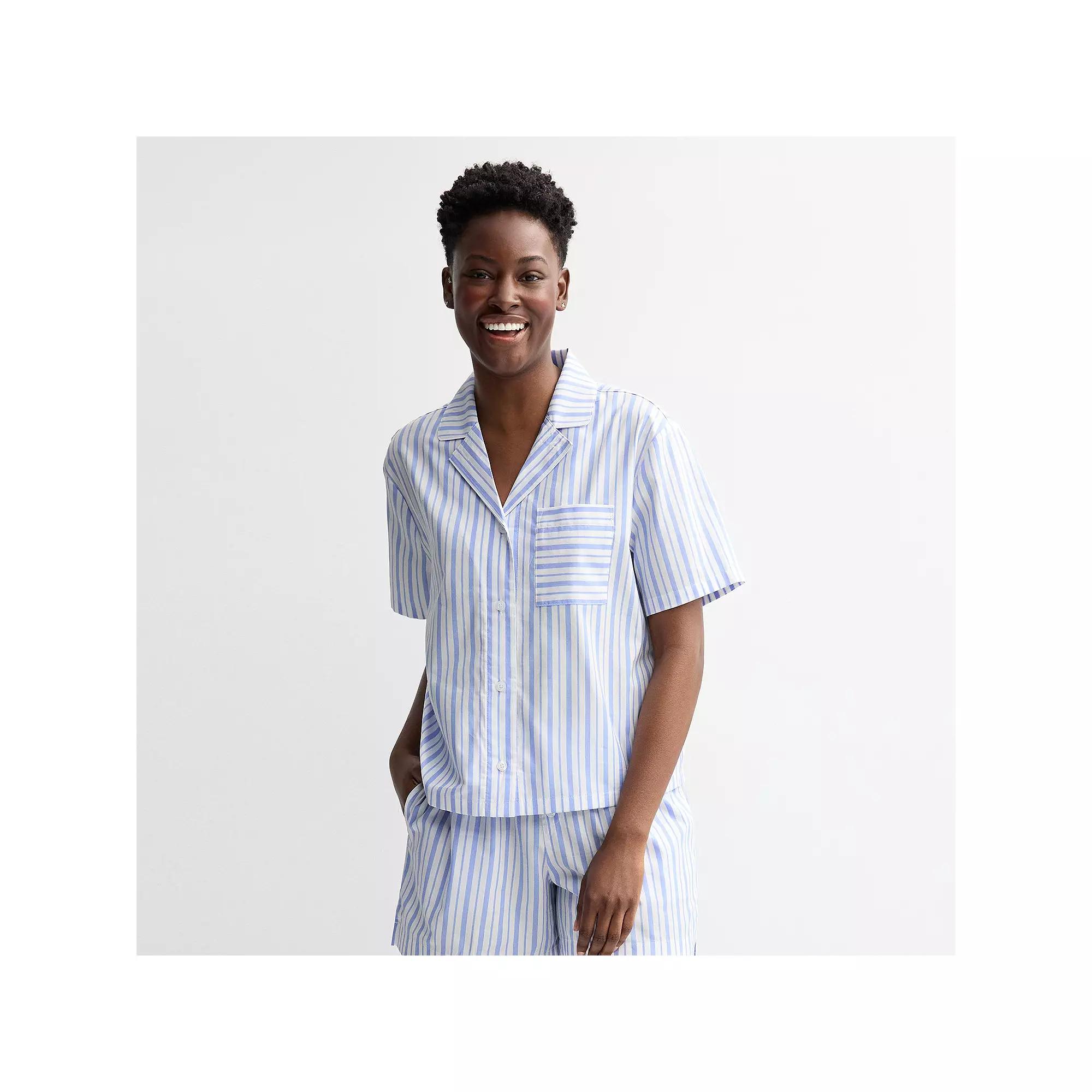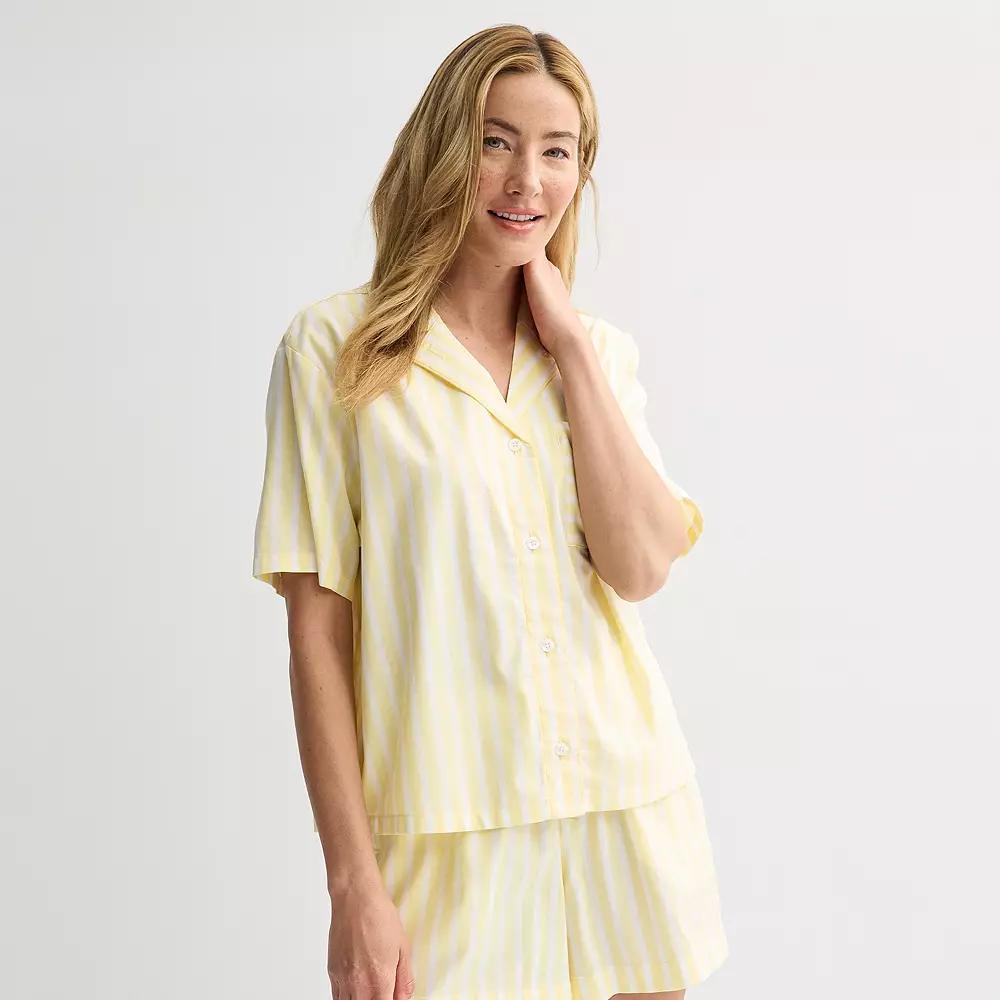 Embrace restful nights and leisurely mornings with this charming woven sleep top from Sonoma Goods For Life. Its relaxed fit ensures easy movement, offering maximum comfort while creating a soothing bedtime routine that feels effortlessly cozy. Click on this INTIMATES & SLEEPWEAR GUIDE to find the perfect fit and more! - https://www.kohls.com/feature/womens-sleepwear-and-intimates-guide.jsp. FEATURES: Collared neckline, Short sleeves, Button closure, Straight hem, 1 front pocket. FIT & SIZING: 24-in. length from shoulder to hem, Relaxed fit. FABRIC & CARE: Cotton, rayon, Machine wash and tumble dry low, Imported. RESPONSIBLE Supports more sustainable cotton farming. Size: X Large. Color: Yellow White Stripe. Gender: female. Age Group: adult. Material: COTTON BLEND.