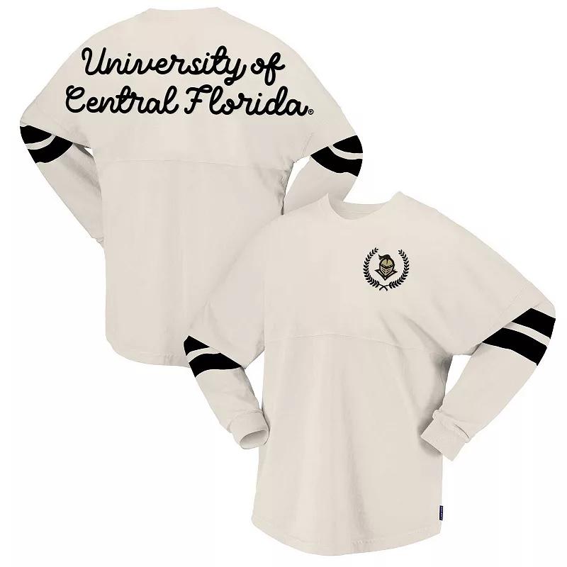 Stay at the top of your fashion game in this UCF Knights Oversized T-shirt. Designed by Spirit Jersey, it features the official UCF Knights logo printed on the front and the team name in low-puff details across the back. A roomy fit and dropped shoulders create a chic look thats comfortable to wear all day.Stay at the top of your fashion game in this UCF Knights Oversized T-shirt. Designed by Spirit Jersey, it features the official UCF Knights logo printed on the front and the team name in low-puff details across the back. A roomy fit and dropped shoulders create a chic look thats comfortable to wear all day.PRODUCT FEATURESOfficially licensedDouble needle coverstitch yokeBrand: Spirit JerseyLong sleeveMaterial: 100% CottonMachine wash with garment inside out, tumble dry lowImportedLow-puff screen print graphicsCrew neckOversized fit (recommend sizing down one for a standard fit)Rounded hemHeavy pre-shrunk jersey fabricDropped shoulders Size: M. Color: Beige. Gender: female. Age Group: adult.