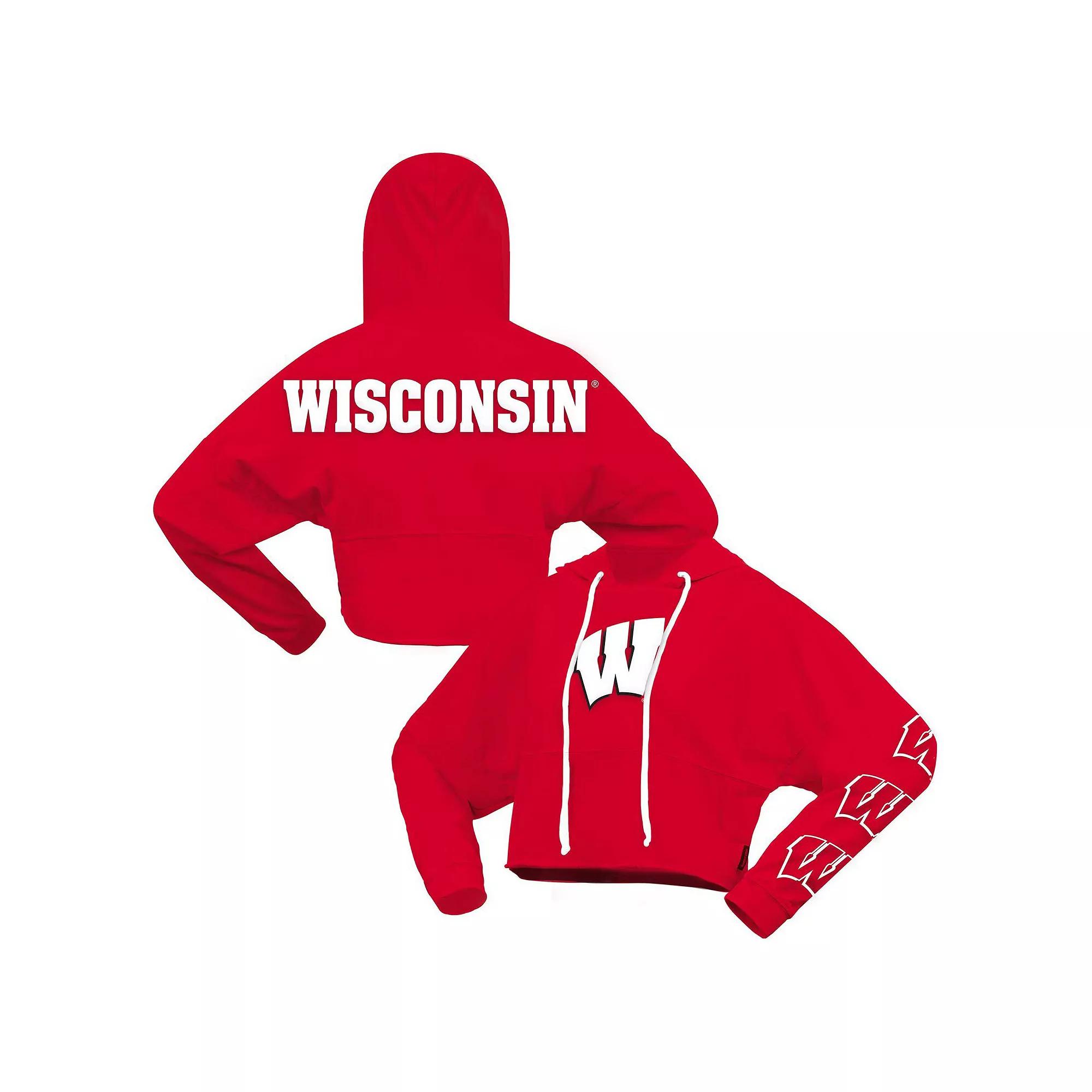 Stay at the top of your fashion game in this Wisconsin Badgers cropped pullover hoodie. Its oversized design by Spirit Jersey features the Wisconsin Badgers logo printed on the front and left sleeve with the team name in low-puff details across the back. A roomy fit and dropped shoulders create a chic look thats comfortable to wear all day.Stay at the top of your fashion game in this Wisconsin Badgers cropped pullover hoodie. Its oversized design by Spirit Jersey features the Wisconsin Badgers logo printed on the front and left sleeve with the team name in low-puff details across the back. A roomy fit and dropped shoulders create a chic look thats comfortable to wear all day.PRODUCT FEATURESOversized fit (recommend sizing down one for a standard fit)Low-puff screen print graphicsCropped rounded hemMidweight hoodie suitable for moderate temperaturesDropped shouldersMachine wash with garment inside out, tumble dry lowOfficially licensedHoodedPulloverMaterial: 100% CottonDouble needle coverstitch yokeHeavy pre-shrunk jersey fabricLong sleeveBrand: Spirit Jersey Size: XXL. Color: Red. Gender: female. Age Group: adult.