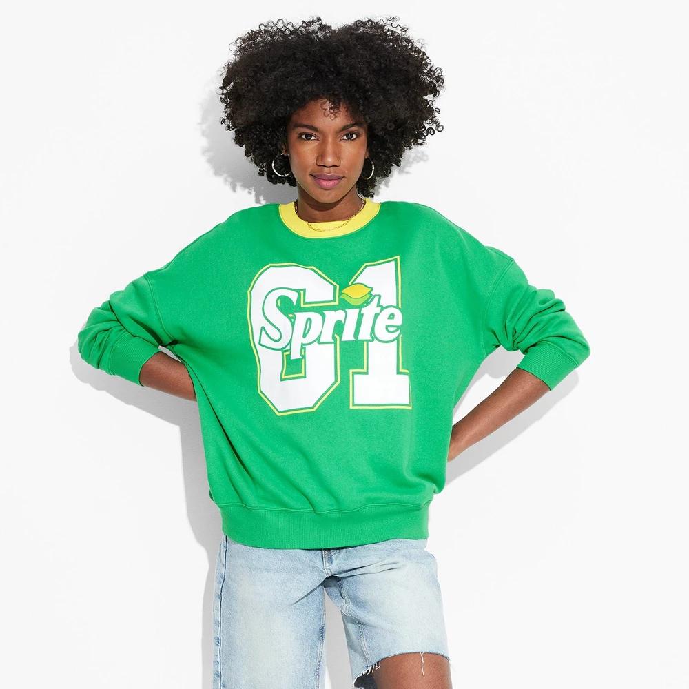The Womens Sprite Graphic Sweatshirt in Green offers a fresh, vibrant look for any casual outing. Featuring a standard fit and a cozy fleece fabric, this long sleeve sweatshirt keeps you comfortable all day long. The crew neckline and below waist length add to its relaxed style, while the eye-catching graphic brings a fun, playful vibe to your wardrobe.