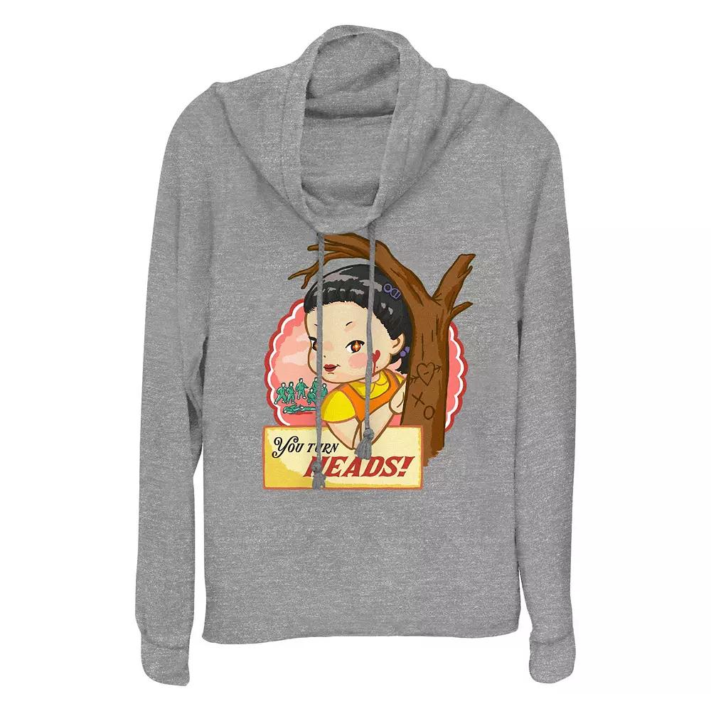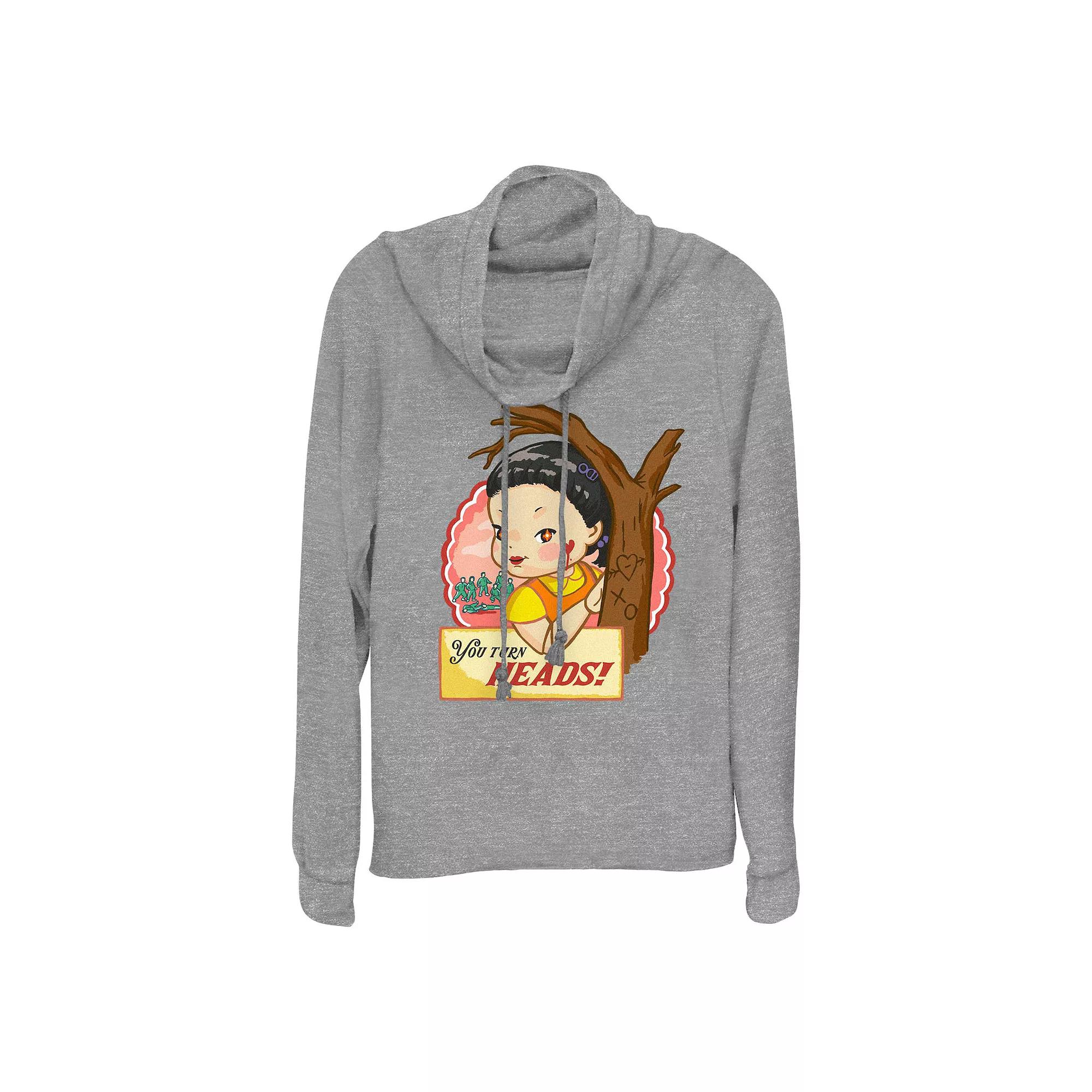Show your love on Valentine's Day with this Women's Squid Game You Turn Heads Cowlneck Graphic Lightweight Long Sleeve.FEATURES Cowlneck Long sleevesFABRIC & CARE Polyester, rayon, spandex Machine wash Imported Size: Small. Color: Gray Heather. Gender: female. Age Group: adult.