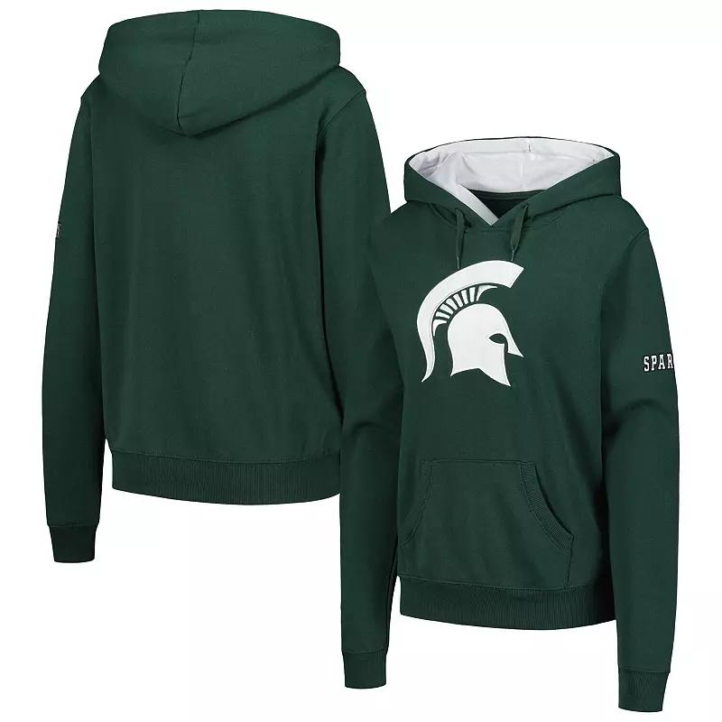 Women's Stadium Athletic Green Michigan State Spartans Big Logo Pullover Hoodie,