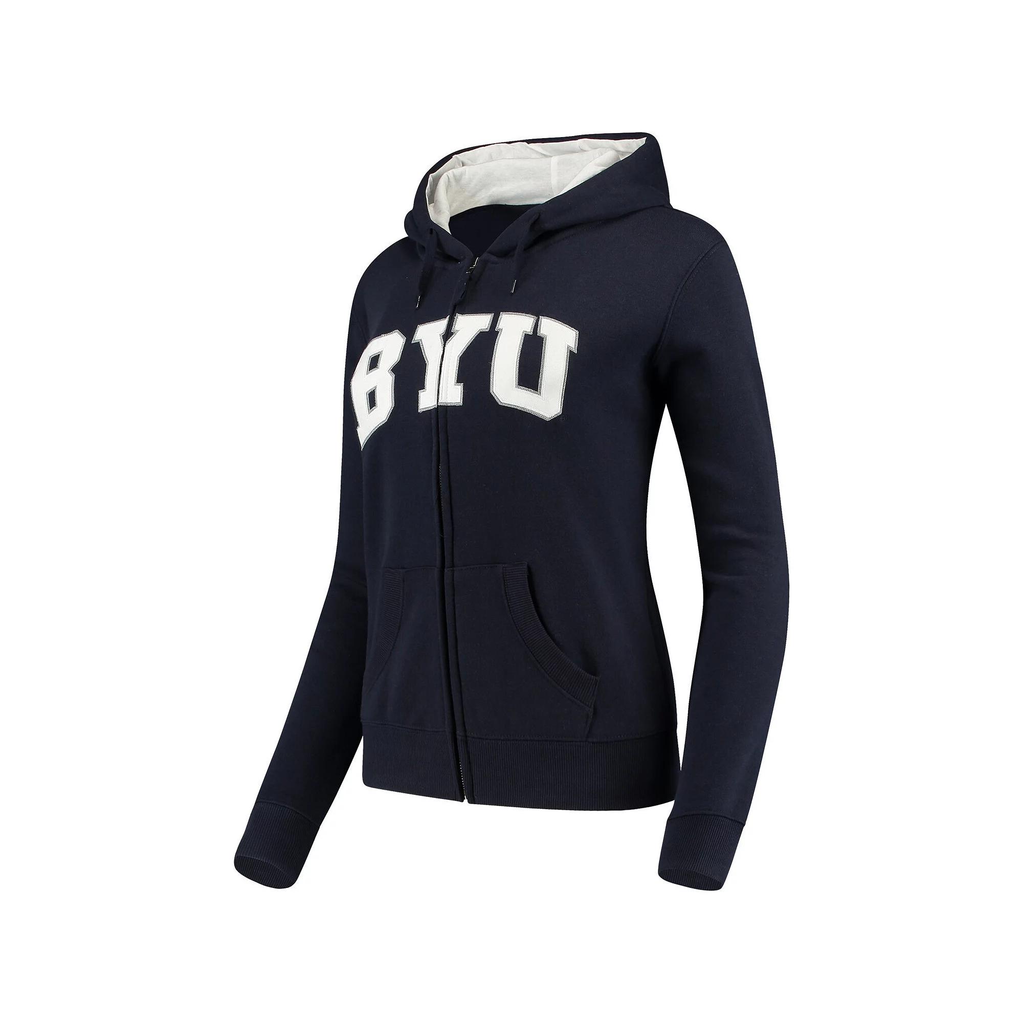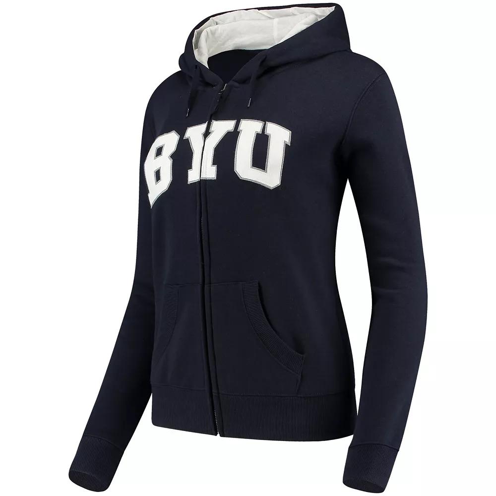 Get in the game this season with this BYU Cougars Arched Name full-zip hoodie from Stadium Athletic. Hooded. Midweight hoodie suitable for moderate temperatures. Imported. Two front pockets. Material: 70% Cotton/30% Polyester. Lined hood with drawstring. Officially licensed. Machine wash. Full-zip. Embroidered fabric applique. Fleece lined. Brand: Colosseum. Full Zip. Long sleeve. Rib-knit cuffs and waist hem. Color: Navy. Gender: female. Age Group: adult.