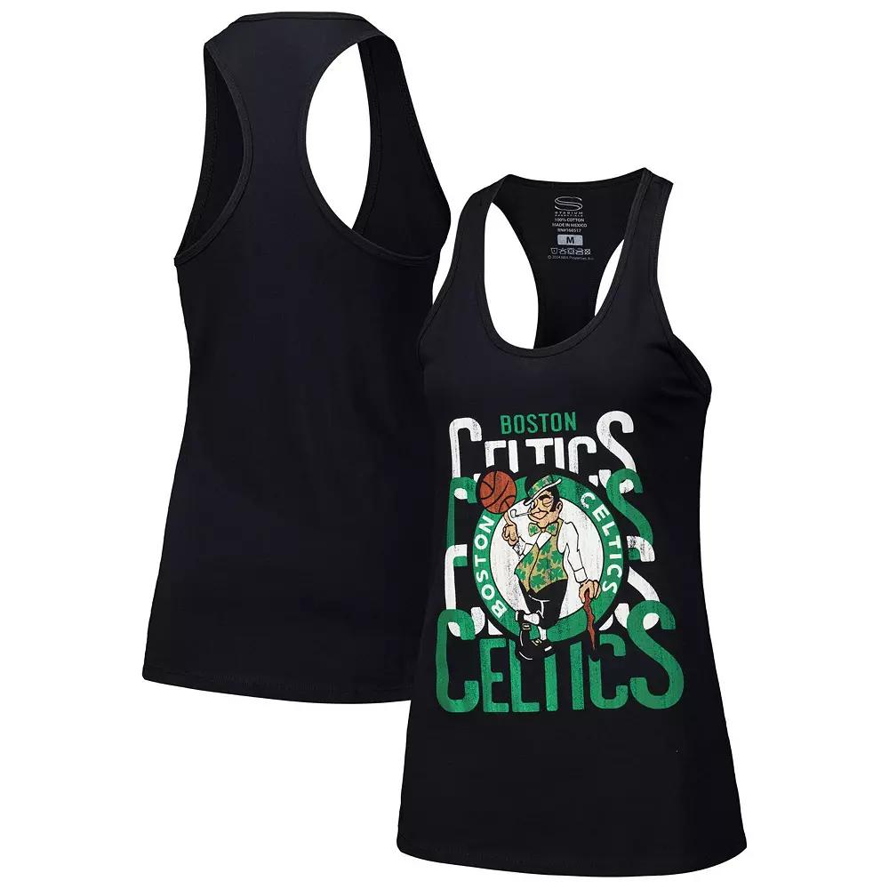 During hot weather, keep cool in this Boston Celtics Dedication tank top. Made by Stadium Essentials, it features large team graphics printed in a distressed design for a vintage touch. The scoop neck gives this Boston Celtics top a relaxed fit.During hot weather, keep cool in this Boston Celtics Dedication tank top. Made by Stadium Essentials, it features large team graphics printed in a distressed design for a vintage touch. The scoop neck gives this Boston Celtics top a relaxed fit.PRODUCT FEATURESSleevelessMaterial: 100% CottonBrand: Stadium EssentialsMachine wash, tumble dry lowOfficially licensedImportedDistressed screen print graphicsScoop neck Color: Black. Gender: female. Age Group: adult.