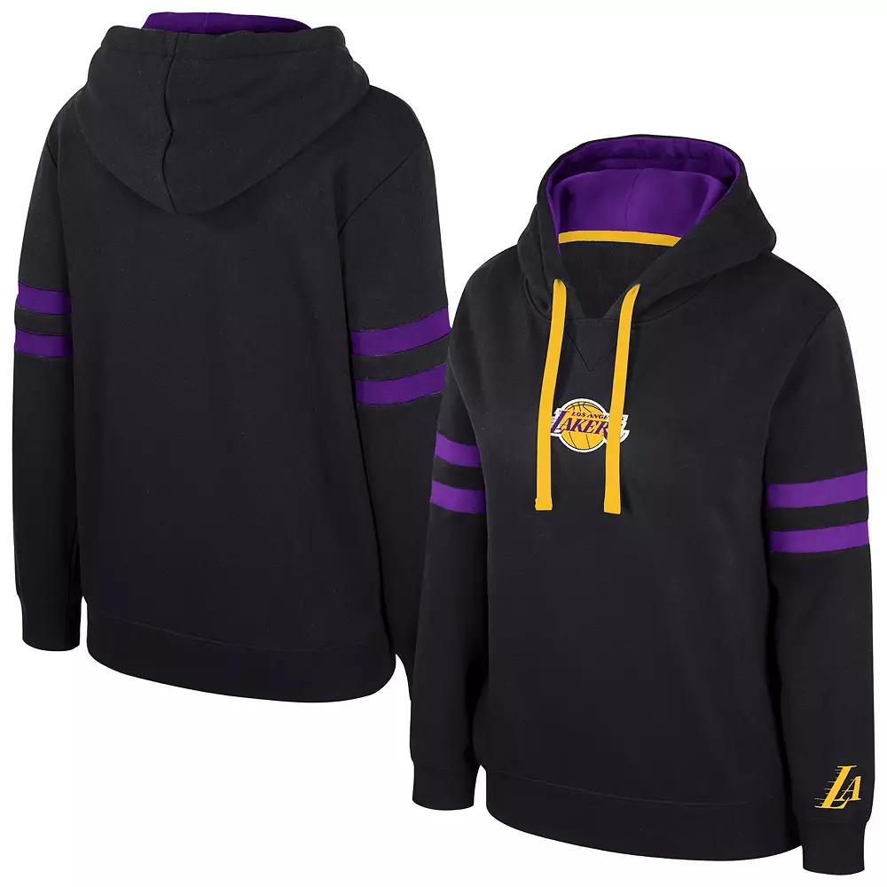 Head out in comfy Los Angeles Lakers apparel with this Road Game Pullover Hoodie from Stadium Essentials. Its drawstring-adjustable, lined hood provides customizable coverage, while fleece lining adds softness and cozy warmth. The rubberized and printed team logos display your fandom wherever you go in this Los Angeles Lakers hoodie.Head out in comfy Los Angeles Lakers apparel with this Road Game Pullover Hoodie from Stadium Essentials. Its drawstring-adjustable, lined hood provides customizable coverage, while fleece lining adds softness and cozy warmth. The rubberized and printed team logos display your fandom wherever you go in this Los Angeles Lakers hoodie.PRODUCT FEATURESMaterial: 80% Cotton/20% PolyesterMachine wash, tumble dry lowHeat-sealed rubberized team logo applique at center frontOfficially licensedPulloverLong sleeveHoodedImportedScreen print logo on lower left sleeveMidweight hoodie suitable for moderate temperaturesBrand: Stadium EssentialsDrawstring hood with contrast-color lining provides customizable coverageFleece lining adds softness and cozy warmthSewn-on sleeve stripes Color: Black. Gender: female. Age Group: adult.