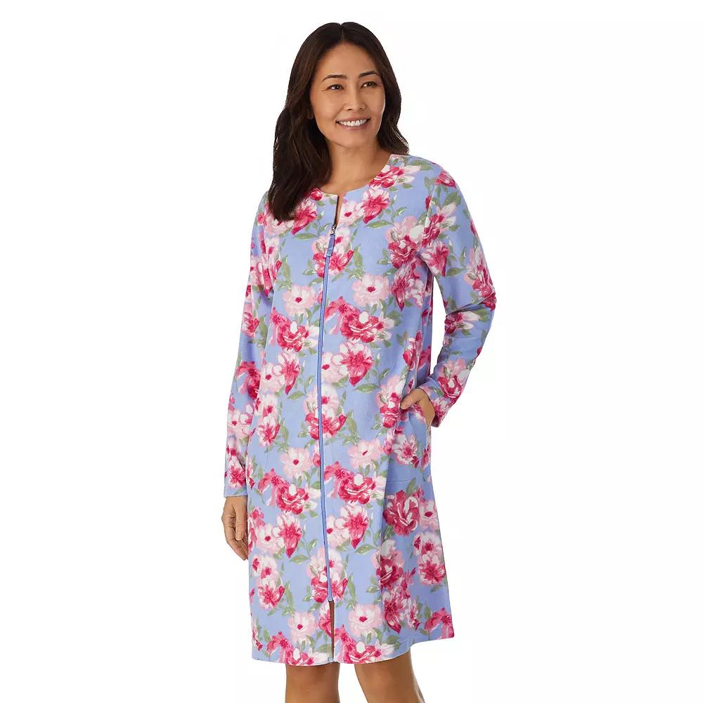 Cozy up in this womens Stan Herman zip-front robe, featuring a pretty floral print. Cozy up in this womens Stan Herman zip-front robe, featuring a pretty floral print. Watch the product video here 2 pockets Zip front Soft terrycloth construction Pretty floral print Long sleevesFIT & SIZING 38-in. approximate length from shoulder to hemFABRIC & CARE Polyester Machine wash Imported Size: Small. Color: Blue. Gender: female. Age Group: adult.