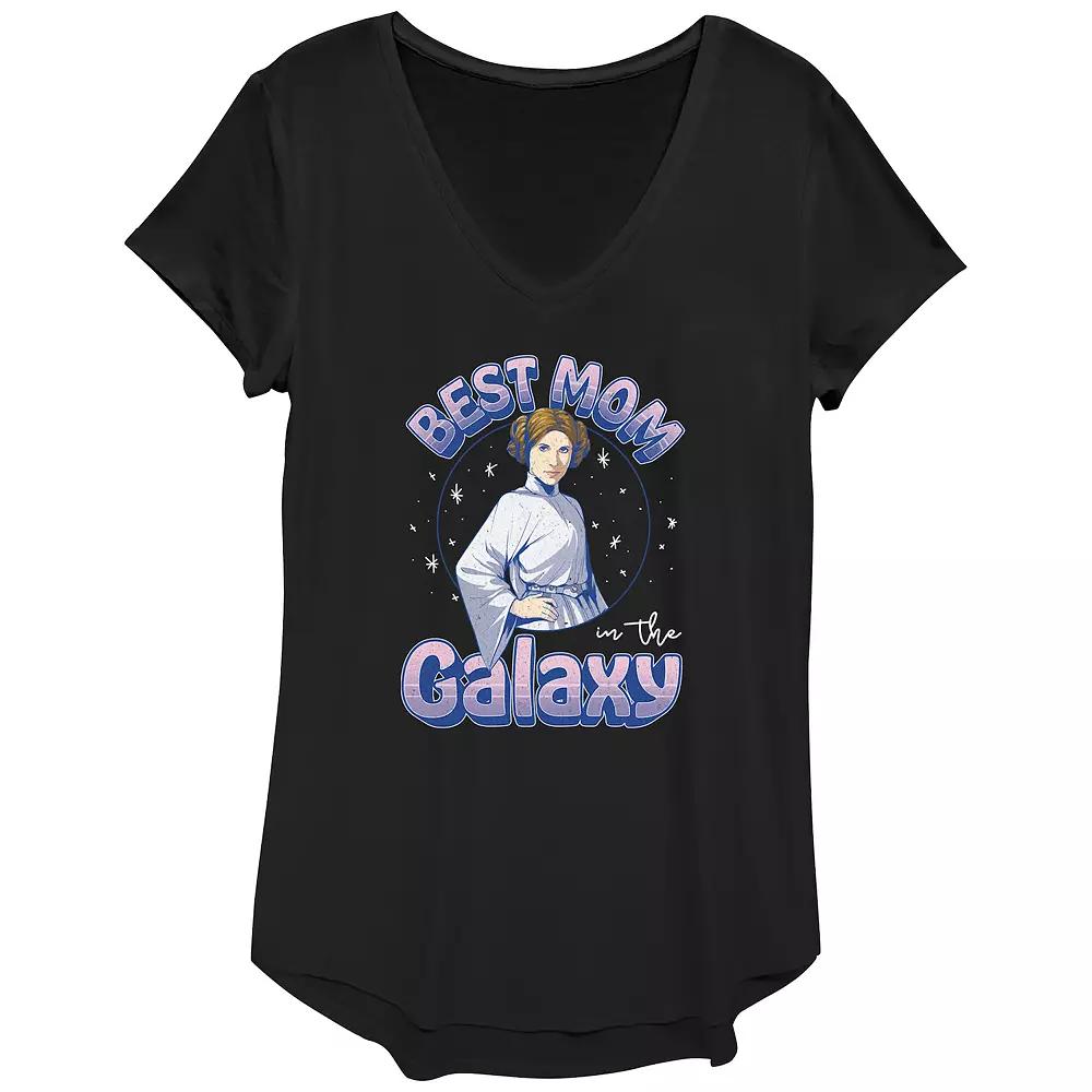Shell love the look and feel of this Womens Star Wars Princess Leia Best Mom In The Galaxy Graphic Tee. FEATURES V-neck Short SleevesFABRIC & CARE Polyester/Rayon/Spandex Machine wash Imported Size: Large. Color: Black. Gender: female. Age Group: adult.