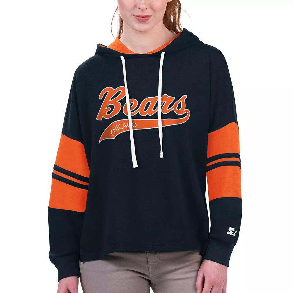 Enjoy the perfect combination of comfort and Chicago Bears spirit in the form of this Bump and Run T-shirt from Starter. It features a sizable Chicago Bears wordmark printed across the chest with a team-colored torso and sleeves for an undeniably team-inspired look. The integrated hood helps you enjoy head coverage without the added weight of an extra layer.