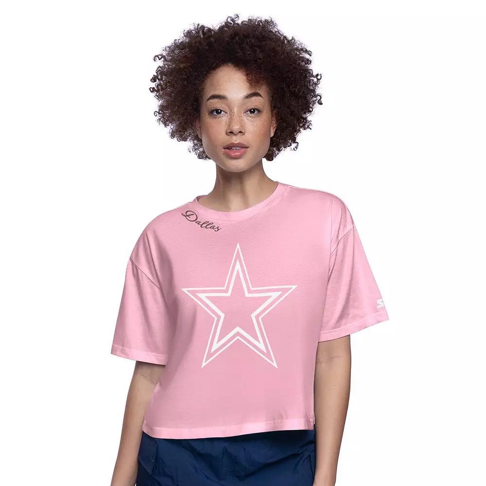 Add a playful pop of team spirit to your game day look with this Dallas Cowboys Play the Ball Boxy Cropped T-Shirt from Starter. This stylish cropped tee features a bold screen-printed team logo across the front, making it clear who you're rooting for on game day. The boxy fit offers a trendy and relaxed silhouette, perfect for pairing with your favorite jeans or leggings. Imported. Large screen print team logo at front. Brand: Starter. Screen print team wordmark at upper right collar. Material: 60% Cotton/40% Polyester. Machine wash, tumble dry low. Short sleeve. Cropped boxy fit for a trendy look. Officially licensed. Size: XL. Color: Pink. Gender: female. Age Group: adult.