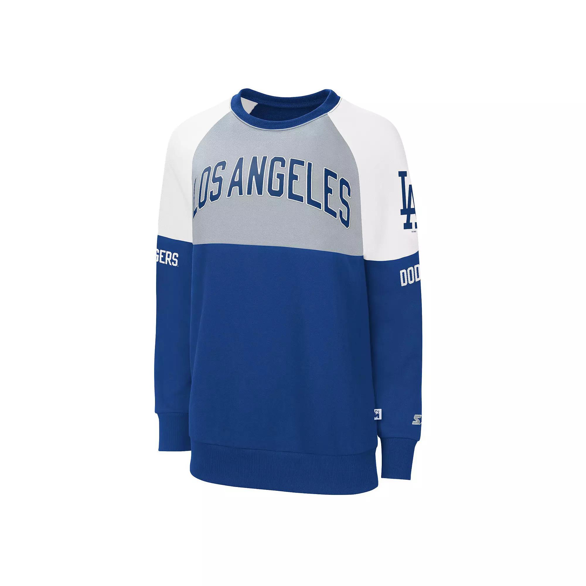Your Los Angeles Dodgers loyalty will undoubtedly catch the eye in this bold Baseline pullover sweatshirt from Starter. Its colorful design features printed Los Angeles Dodgers graphics across the front and on both sleeves. The raglan construction of the sleeves will also give you greater flexible movement for a more comfortable fit.