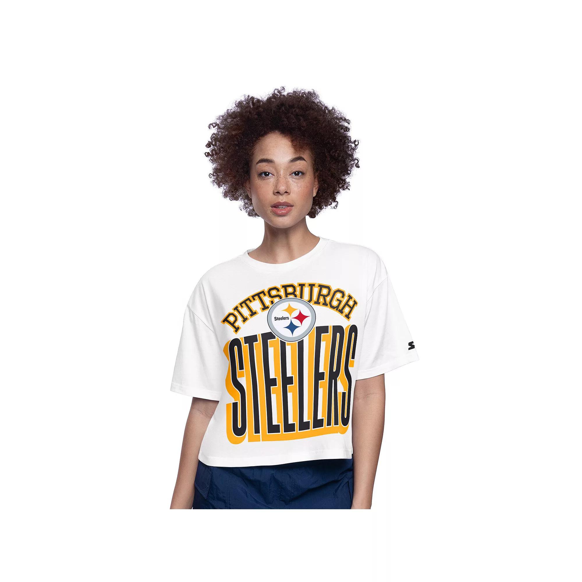 Add a playful pop of team spirit to your game day look with this Pittsburgh Steelers Play the Ball Boxy Cropped T-Shirt from Starter. This stylish cropped tee features a bold screen-printed team logo across the front, making it clear who youre rooting for on game day. The boxy fit offers a trendy and relaxed silhouette, perfect for pairing with your favorite jeans or leggings.Add a playful pop of team spirit to your game day look with this Pittsburgh Steelers Play the Ball Boxy Cropped T-Shirt from Starter. This stylish cropped tee features a bold screen-printed team logo across the front, making it clear who youre rooting for on game day. The boxy fit offers a trendy and relaxed silhouette, perfect for pairing with your favorite jeans or leggings.PRODUCT FEATURESLarge screen print team graphics at frontOfficially licensedCrew neck provides a traditional look and is comfortable to wear all dayBrand: StarterImportedShort sleeveCropped boxy fit for a trendy lookMachine wash with garment inside out, tumble dry lowMaterial: 60% Cotton/40% Polyester Color: White. Gender: female. Age Group: adult.